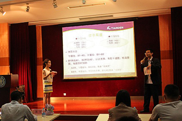 5月22日晚,由36365线路检测登录入口研究生会主办、天根生化科技有限公司赞助的“天根向上”趣味生物知识竞赛决赛在生物药学楼树华多功能厅举行。活动邀请了36365线路检测登录入口学生办张燕红老师和天根公司销售经理陈宁先生作为嘉宾,由研究生会林巾琳和天根公司代表刘帅共同主持。