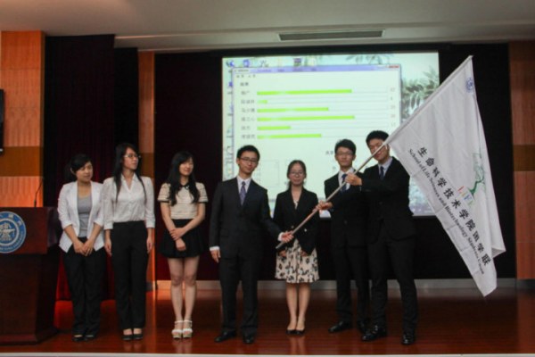 会议第二部分为第四届团学联主席团的选举。六位候选人依次上台进行了精彩的竞选演讲,并回答了代表们的提问。在监票人公证下,经过严谨的唱票程序,杨广、蒋兰心、马少捷三位候选人脱颖而出,成为新一届团学联主席团成员,从老一届团学联主席团手中接过象征责任与使命的团学联会旗。
