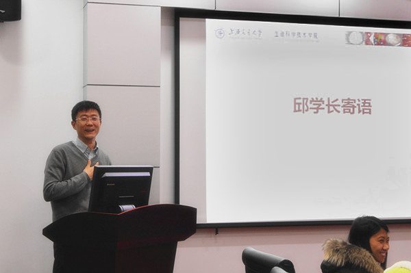 随后,邱雁南为同学们寄语。他从人生规划、公司发展等方面分享了自己的收获,并希望同学们无论在学习中还是工作中都要拥有激情与梦想,激励自己不断拼搏,不断前进。最后,邱雁南校友与获奖同学们亲切交流,解答了同学们在职业发展、人生规划、生命科学发展等方面的问题。