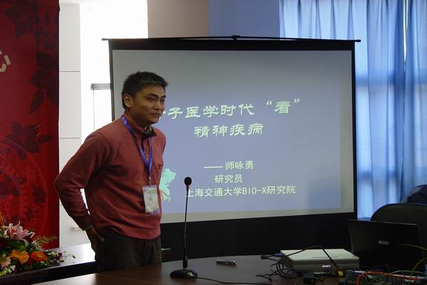 2001届校友师咏勇老师现任校特别研究员,2008年被授予第四届上海青年科技英才荣誉称号,其论文《精神分裂症遗传易感位点的系统研究》被评为全国优秀博士学位论文。师咏勇老师的报告围绕其科研团队的最新研究成果,深入浅出地向大家介绍了精神疾病的遗传因素、环境因素等诱因,以及基因工程等先进技术在该领域研究方面的应用,并引用大量生动翔实的例子,如熊猫为何喜食竹子而非红烧肉、国内三年自然灾害对精神分裂症发病几率的影响等,在轻松、愉快的交流中给同学们上了生动一课。