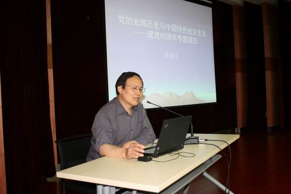 在将近两个小时的报告中,袁秉达教授引经据典、旁征博引,从中国共产党的成立说到遵义会议的重要作用,从建立新中国到社会主义建设的曲折探索,从粉碎“四人帮”到改革开放,开辟中国特色社会主义道路,用重点历史事件串起了中国共产党90年的光辉历程。同时,他还进一步归纳梳理了党史发展脉络,方便大家深入学习研究,其中还不乏一些新的观点和视角,帮助大家更加客观地分析评价历史。