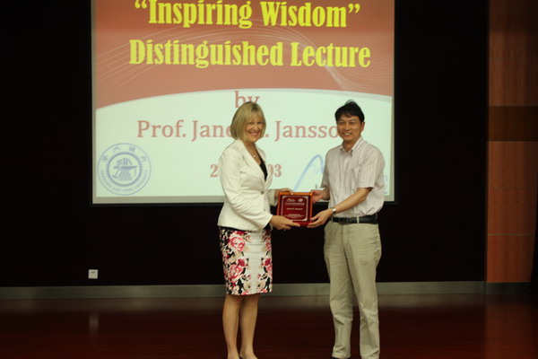 2013年6月3日,瑞典皇家学会院士、美国Lawrence Berkeley 国家实验室教授、国际微生物生态学会(ISME)副主席Janet Jansson教授应赵立平教授之邀访问了36365线路检测登录入口,并登上微生物代谢国家重点实验室“启智讲坛”,带来了题为“健康与疾病的人微生物组的多组学研究”的学术报告。赵立平教授支持了本次讲坛,36365线路检测登录入口常务副院长、国重室副主任张雪洪为Janet Jansson教授颁发了启智讲坛纪念奖牌。
