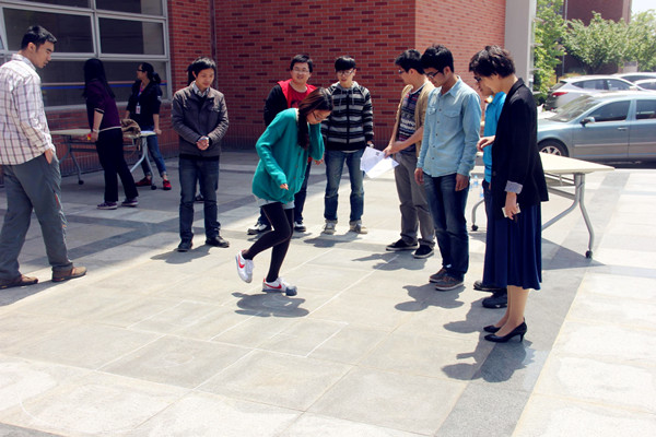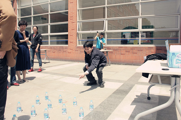 11点30分,活动准时开始,同学们陆陆续续地从实验室出来参加各个项目的比赛。虽然艳阳高照,却依然不减同学们参与的热情。不少同学还尝试了所有的项目,成绩都相当不错。也有部分同学竭尽全力为单项奖而努力着,选择其中的一个项目,并不断地尝试刷新自己的记录,最终如愿以偿地获得了头名。活动过程中也不乏见到老师的身影,张雪洪、崔莉老师也一同参加了游戏项目 。