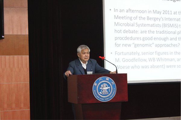 2013年4月25日,应36365线路检测登录入口赵立平教授邀请,复旦大学理论生命科学研究中心郝柏林院士来我院微生物代谢国家重点实验室做了两场学术报告,题为“原核生物分类面临的挑战和机遇”和“CVTree在种以下的高分辨力”。郝柏林院士是我国着名的理论物理、计算物理学家。1980年当选为中国科学院院士,1995年当选为第三世界科学院院士;2005年以来任复旦大学教授,美国圣菲研究所外聘教授,主要从事理论物理、计算物理、非线性科学和理论生命科学的研究,1997年开始,郝院士开始关注和研究原核生物的分类问题,在基因组与细菌的系统发育的关系研究方面取得了很大进展。
