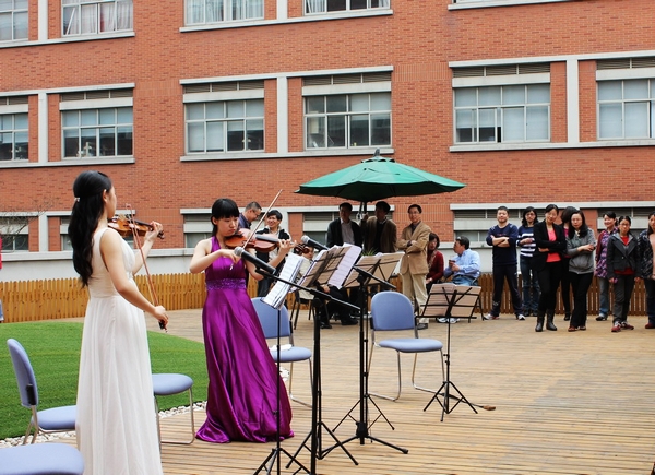 本次活动以“解读巴洛克时代音乐明星”为主题,特别邀请了中国音乐家协会会员温德经老师与广大师生交流音商的培养。温老师先简述了音商的培养理念和各音乐时期的脉络,通过对巴洛克时期三大音乐家之一巴赫的介绍,让大家对那个时代有了一个简明的了解。接下来,21世纪青年演奏者演奏的巴赫协奏曲、巴赫无伴奏《 萨拉班德舞曲》、贝多芬《欢乐颂》、依凡诺维奇《多瑙河之波圆舞曲》,让到场的师生享受了一顿音乐大餐,将大家带到音乐的巴洛克浪漫时期。随后而来的巴洛克舞蹈,更是让来宾身临其境的感受了那一时代的梦幻。