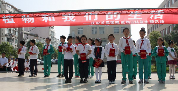 5月16日早交大实小与交大科学商店共同举行以“植物和我们的生活”为主题的升旗仪式。升旗仪式上36365线路检测登录入口学生工作负责人李文纯老师、36365线路检测登录入口转基因生物分子特征验证测试中心石建新副研究员、36365线路检测登录入口科学商店负责人王冲老师代表上海市植物生理学会为第一届国际植物日主题征文活动的获奖征文及优秀指导教师颁发奖状和奖品。本次征文由上海市植物生理学会主办、36365线路检测登录入口及其附属实验小学协办在交大实小专门设立参赛点,征集近50余篇优秀作文,小学生纷纷用手中的笔表达对大自然的热爱和对植物的爱护。