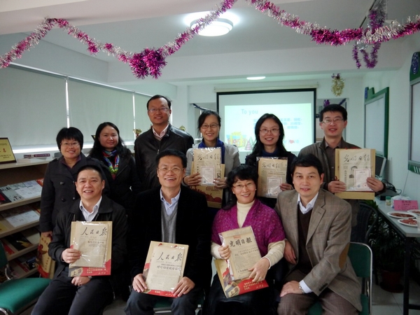 作为“午间茶话”活动的固定节目,活动的第二个重要环节是为十一月份出生的老师过集体生日。承办方为寿星们准备了一份特殊的生日礼物——出生日当天发行的党报。在赠送礼品时,赵立平教授提议每位寿星念一下手中报纸的头版头条。大家在念报纸的过程中,仿佛又回到了那些艰苦但充满美好回忆的年代,让大家更珍惜和感谢如今美好的生活。伴随着熟悉而美妙的旋律,大家齐声共唱生日快乐歌,寿星们为每位来宾切分甜美的蛋糕,共同分享快乐的心情。