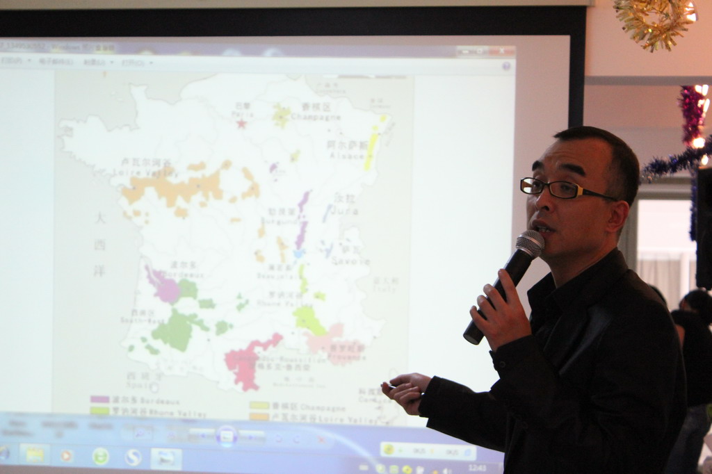 本次活动以“波尔多红酒之魅力”为主题,特别邀请了法国食品协会会员唐胤老师与广大师生交流红酒的魅力。唐老师从葡萄酒的基本知识入手,介绍品尝红酒的方法、注意事项、如何品味红酒美味之髓。同时,唐老师还教会师生们简单有效又快速的鉴定红酒的真假、纯正,让大家对红酒的品、鉴、赏都有了一定的了解。此外,唐老师慷慨地资助了1款德国白葡萄酒和4款法国红酒,共计30瓶供在场师生品尝,并在接下来的环节,通过对这几款红酒的讲解和品尝,让在场的老师同学逐步鉴定不同性质红酒的浓郁、纯情、浪漫,享受了一顿美酒大餐,仿佛大家置身于浪漫、浓情的法国波尔多红酒庄园。随后唐老师更深入浅出的道来红酒有益健康的各种优势,对于身体的各个部位都起到应有的作用。