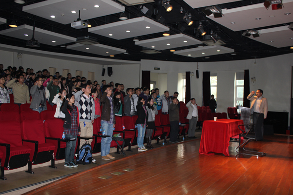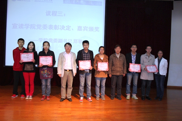 学生党总支书记李文纯老师详细介绍了学院学生党建组织架构,并从学生党建工作基本理念、基本思路、党员发展、党员教育、支部建设、创先争优六个方面详细总结了前期党建工作开展情况。又从“带头砥砺一等品行”、“带头树立一等表率”、“带头潜心一等学问”三个主题出发介绍了“喜迎十八大,我们在行动”系列活动安排。精彩的工作总结和系列活动的启动引来各位同学的阵阵掌声。