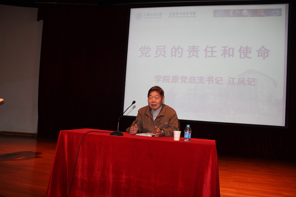 随后先进党支部代表硕士生B1008092班党支部结合本支部创新性做法——班级和党支部共同建设模式,进行了支部建设工作经验交流。“优秀党员”代表王珺霞同学从党员不仅是一种称号也不仅是一种荣誉,更重要的是要成为一种习惯角度阐述了自己的所感所悟。 老红军战士、36365线路检测登录入口原党总支书记、已近80岁高龄的老党员江凤记老师为全体党员做了“党员责任与使命”专题讲座。江凤记老师从一名老党员、老同志的角度对党的路线、政策进行了解读,对十八大召开的进行了展望,并对全体党员同学提出了三点希望:一、希望所有党员同学努力学习科学文化知识、做好本职工作、二、希望所有党员同学加强自身党性修养,保持党的纯洁性。 三、希望所有党员同学时刻关注党的新政策、关注国家大事、并努力开阔国际视野。