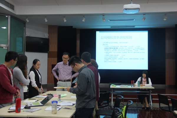 段利丽与苏欣老师带领同学们体验公司运营的具体情境,共同探讨公司价值链和企业竞争优势。在企业运营游戏中,同学们进一步体会与客户沟通和销售的情境,对企业运营有了具体化认识。