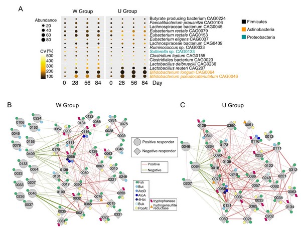 研究团队通过开放式随机对照试验结合元基因组学分析,发现增加大量多样化的膳食纤维,可通过改变菌群结构而显著改善2型糖尿病人的胰岛素分泌和胰岛素敏感性;在菌株水平,课题组鉴定出了一组有利于增加胰岛素分泌和提高胰岛素敏感性的“短链脂肪酸”产生菌,可以被看作是恢复和维持人体健康必需的“生态功能群”。课题组发现,这“群”细菌的丰度和多样性恢复得越高,糖化血红蛋白降低得就越低,并建立了用这些关键细菌的早期变化预报疗效的统计模型。针对每个病人的菌群特征,通过合理设计的高膳食纤维饮食特异性地促进这“群”细菌的生长,或可成为未来糖尿病个性化营养治疗的新途径。