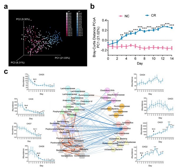 本研究表明节食小鼠肠道中的特定优势细菌乳杆菌对节食产生的健康效应有重要贡献。这项小鼠研究对人体抗衰老具有重要的借鉴意义,提示我们,升高肠道关键有益细菌或可作为减轻系统性炎症、改善肠屏障功能、减少老年病、延长健康寿命的新靶点。