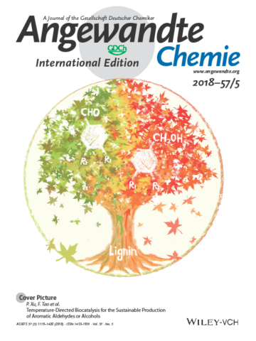 近期,国际著名学术期刊Angewandte Chemie International Edition以前封面文章(front cover)的形式发表了36365线路检测登录入口、微生物代谢国家重点实验室许平教授团队在可再生资源利用领域的最新研究进展“Temperature-directed biocatalysis for the sustainable production of aromatic aldehydes or alcohols”。陶飞副研究员为共同通讯作者,博士后倪俊和硕士生高琰琰为共同第一作者。