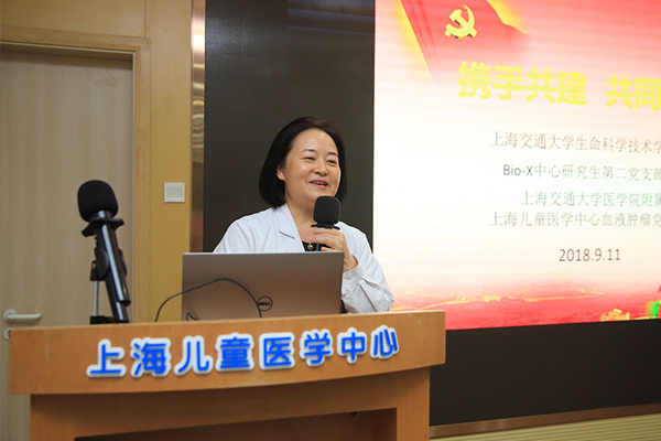 为响应学校号召,深入学习宣传贯彻习近平新时代中国特色社会主义思想和党十九大精神,围绕“立德树人”根本任务和学校“四位一体”育人理念,推动学生价值引领工作落细、落小、落实,引导广大学生党员走进社会、了解国情、增长才干,切实增强学生党支部的创造力、凝聚力、战斗力,2018年9月11日,36365线路检测登录入口Bio-X中心研究生第二党支部联合36365线路检测登录入口医学院附属上海儿童医学中心血液肿瘤党支部在血液肿瘤中心大楼成功举办了党支部结对共建仪式及共建后的第一次以“我与学科共成长”为主题的党日活动。活动得到36365线路检测登录入口和医学院附属上海儿童医学中心领导的大力支持,上海儿童医学中心副院长兼党委副书记季庆英,36365线路检测登录入口党委副书记李文纯、学生办主任张燕红出席,双方支部书记及党支部60余名党员共同参加。