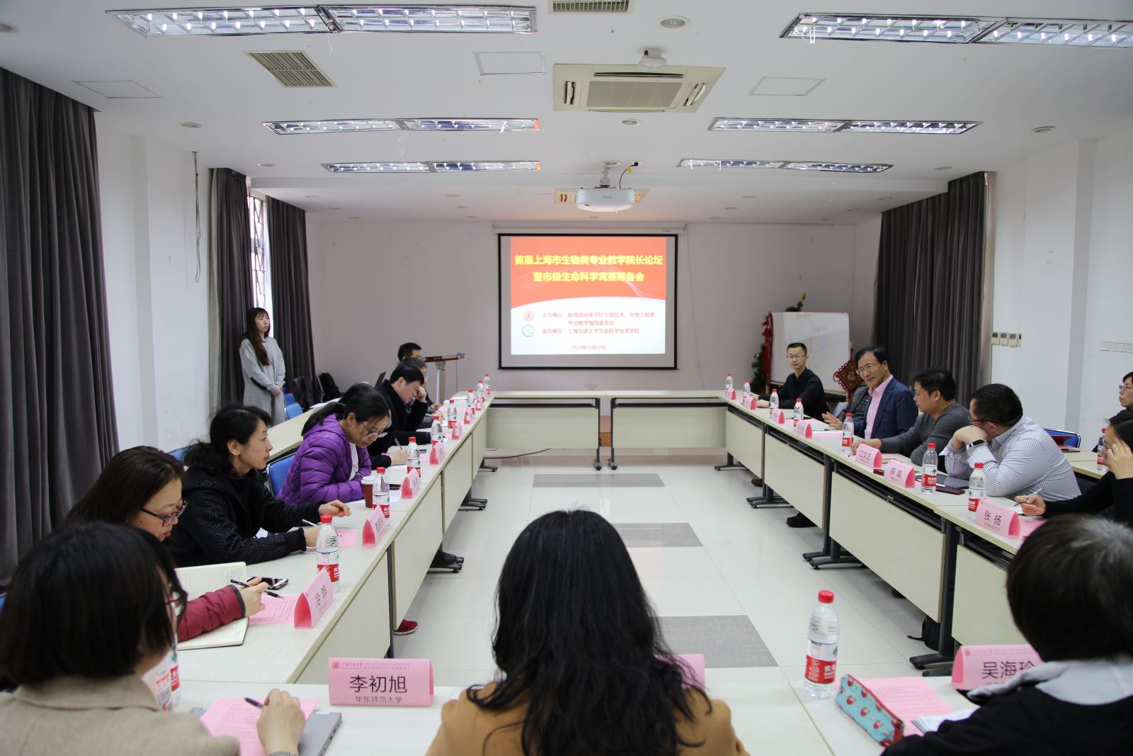 2019年3月15日,首届上海市生物类专业教学院长论坛暨上海市大学生生命科学竞赛筹备会于36365线路检测登录入口徐汇校区召开。本次会议由教育部高等学校生物技术、生物工程类专业教学指导委员会主办、36365线路检测登录入口承办。上海市生物类专业学院的教学院长(教学负责人)及上海市生命科学竞赛校级管理员共20余人参加了会议。教育部高等学校生物技术、生物工程类教学指导委员会主任委员、36365线路检测登录入口院长邓子新教授到会并致欢迎辞。会议分别由36365线路检测登录入口教务处副处长陈峰教授和上海交大36365线路检测登录入口副院长李志勇教授主持。