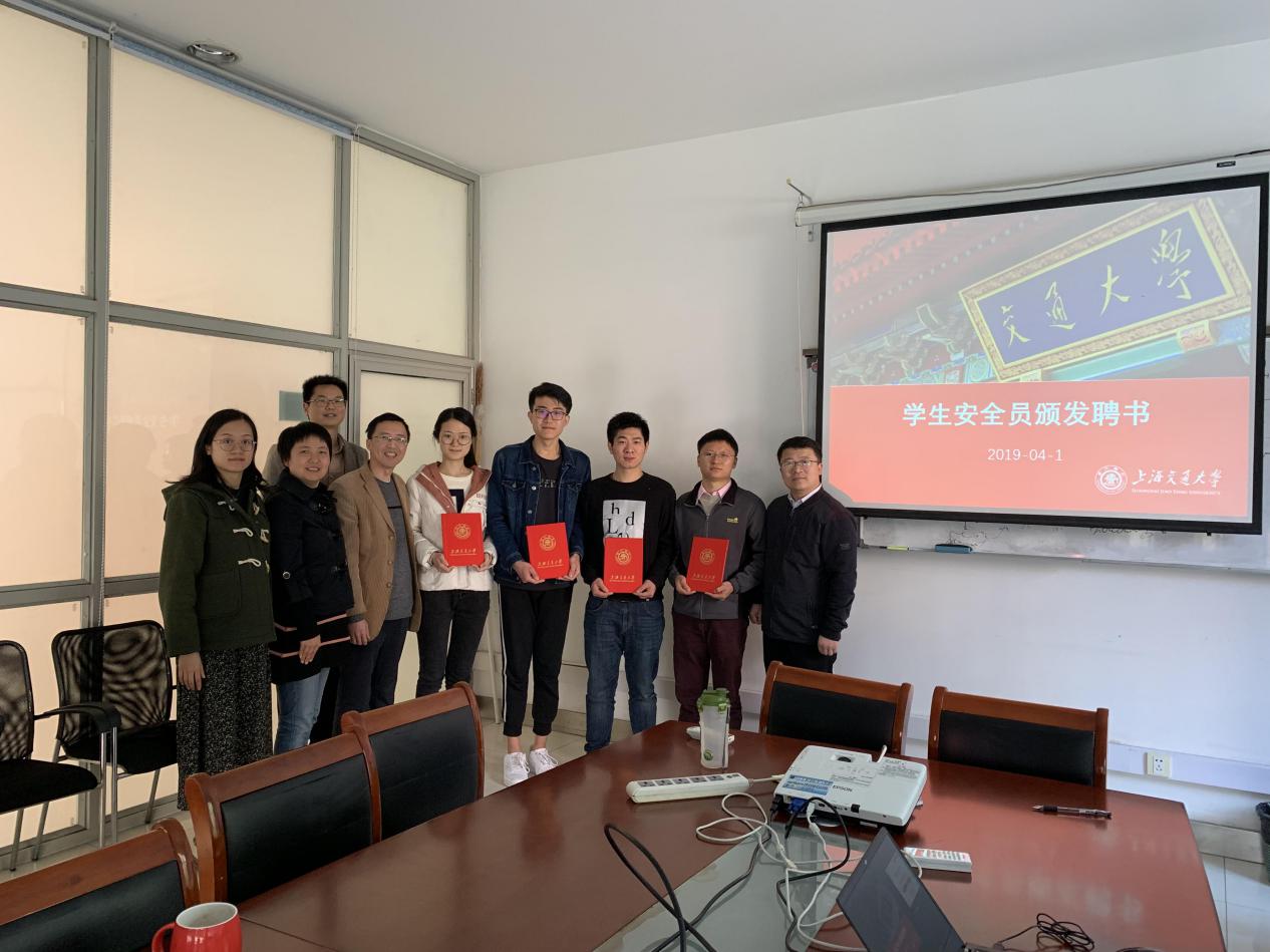 最后,嵇绍岭为四位同学颁发学院“学生安全员”聘书,并合影留念。