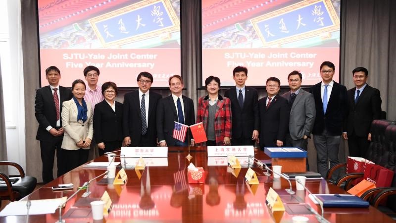 “上海交大-耶鲁大学生物统计和数据科学联合中心”前身是“上海交大-耶鲁大学生物统计学联合中心”(以下简称“生统中心”),成立于2014年3月,经过了五年的建设与发展,在科学研究、人才培养等方面双方取得了令人瞩目的合作进展。Lewis表示,耶鲁大学珍视与上海交大多年来的合作,也为两校如今在诸多领域取得的成果而感到自豪,期待彼此能保持这种势头。双方回顾了两校的合作历史,续签了校级合作协议,并将生统中心正式更名为“上海交大-耶鲁大学生物统计和数据科学联合中心”。数据科学不单是上海交大下一步的发展主题,也是耶鲁大学面向未来的五大发展方向之一,新中心的揭幕意在通过增加在生物医学数据科学这一前沿领域的合作,带动更多双边交流,也为提升两校转化医学领域的组学数据与临床数据研究做更大贡献。