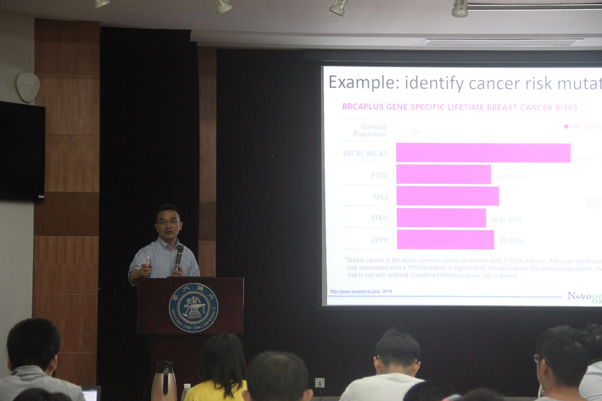 成岗作题为《基因测序技术在肿瘤诊疗中的革命性作用》的产业分享,向大家介绍了二代测序技术的原理,以及其在药物研发和肿瘤诊疗中的应用。通过详细的案例介绍完整介绍了二代测序技术在精准医学领域的发展和未来。最后,成岗代表诺禾致源向学院发出职位邀请,热烈欢迎生科学子的加入。