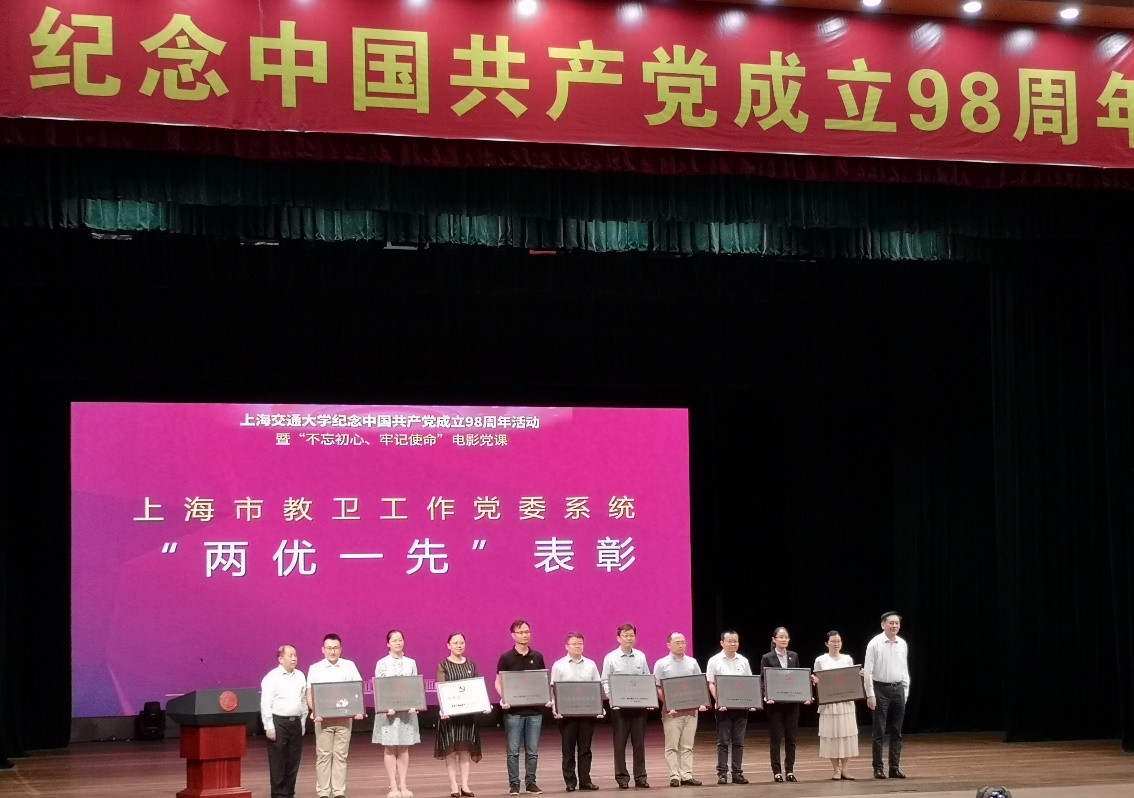 为弘扬先进,树立标杆,进一步激励各级党组织和广大党员不忘初心、牢记使命,在中国共产党成立98周年之际,市教卫工作党委和学校党委开展“两优一先”评比,我院一批个人和集体获得表彰。2019年7月1日,学校党委召开庆祝建党98周年“七一”表彰大会,我院党委荣获上海市教卫工作党委系统“先进基层党组织”,白林泉荣获上海市教卫工作党委系统“优秀共产党员”;刘璐、庄海慧(学生)荣获校“优秀共产党员”,陈海峰、郑敏荣获校“优秀党务工作者”,实验教学中心党支部、微生物科学系研究生第一党支部荣获校“先进基层党组织”。