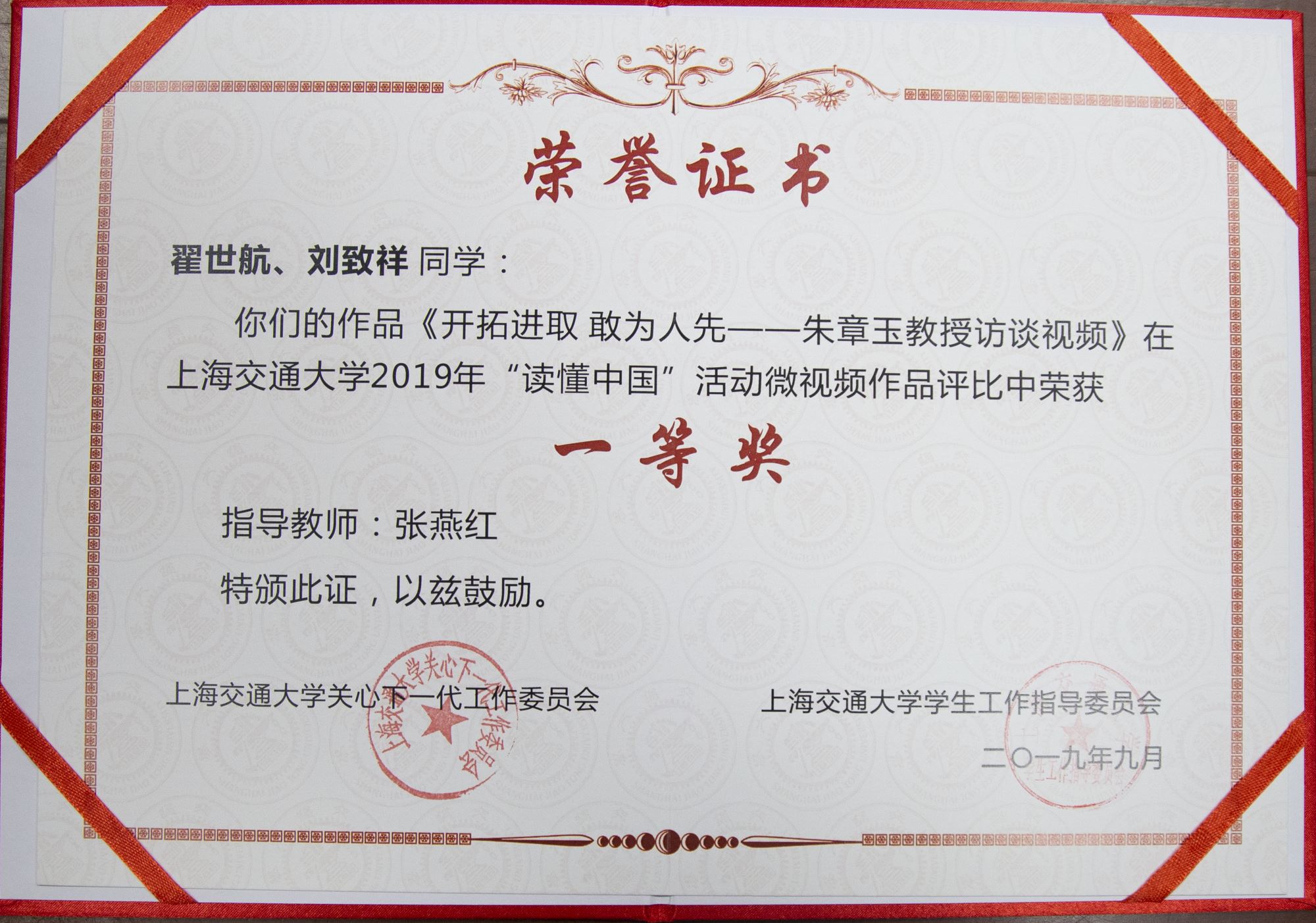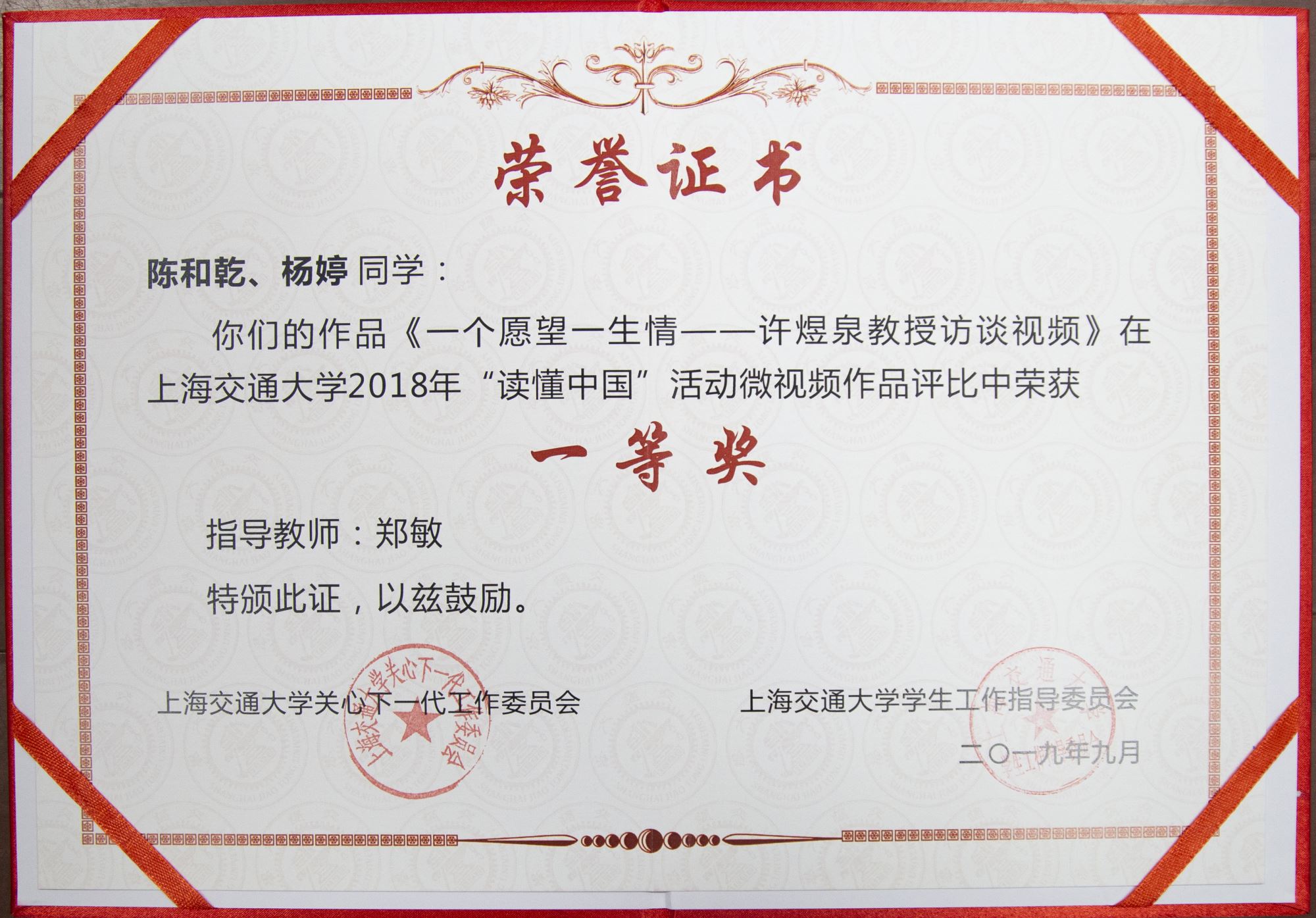 《一个愿望一生情——许煜泉教授访谈视频》及《开拓进取 敢为人先——朱章玉教授访谈视频》荣获36365线路检测登录入口2018、2019年“读懂中国”活动微视频作品一等奖。