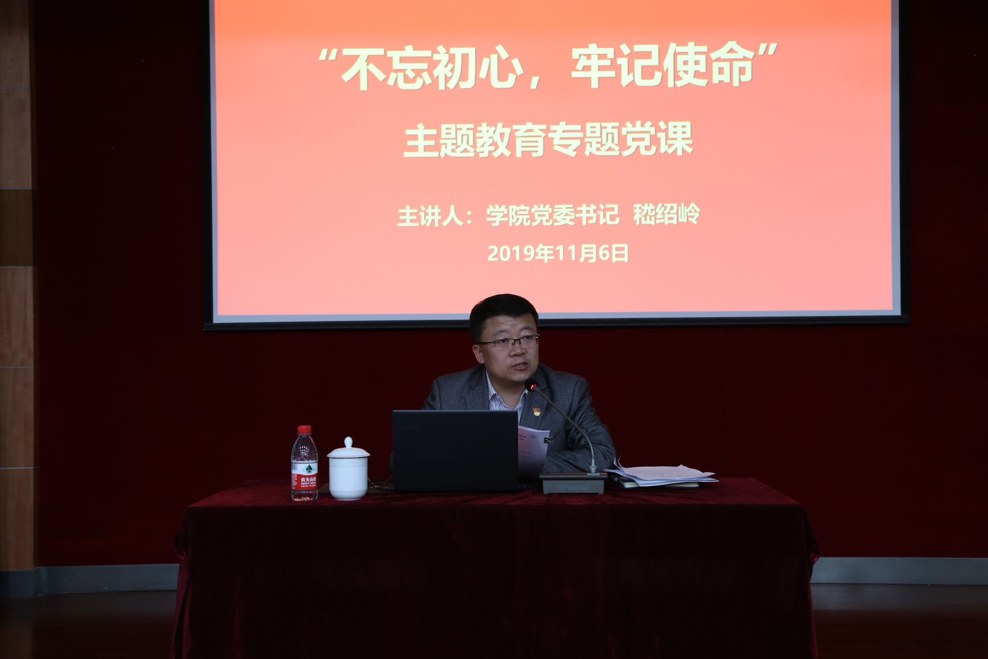 根据校党委“不忘初心、牢记使命”主题教育工作部署,36365线路检测登录入口党员领导班子成员陆续在对应的党支部、党员中讲专题党课。11月6日,学院党委书记嵇绍岭以《从教学到治学,大学教师职责发挥的实践路径》为主题,为学院全体教职工党员上党课。学校第三巡回指导组副组长陈露君、联络员陈思参会指导。党课由学院党委副书记李文纯主持。