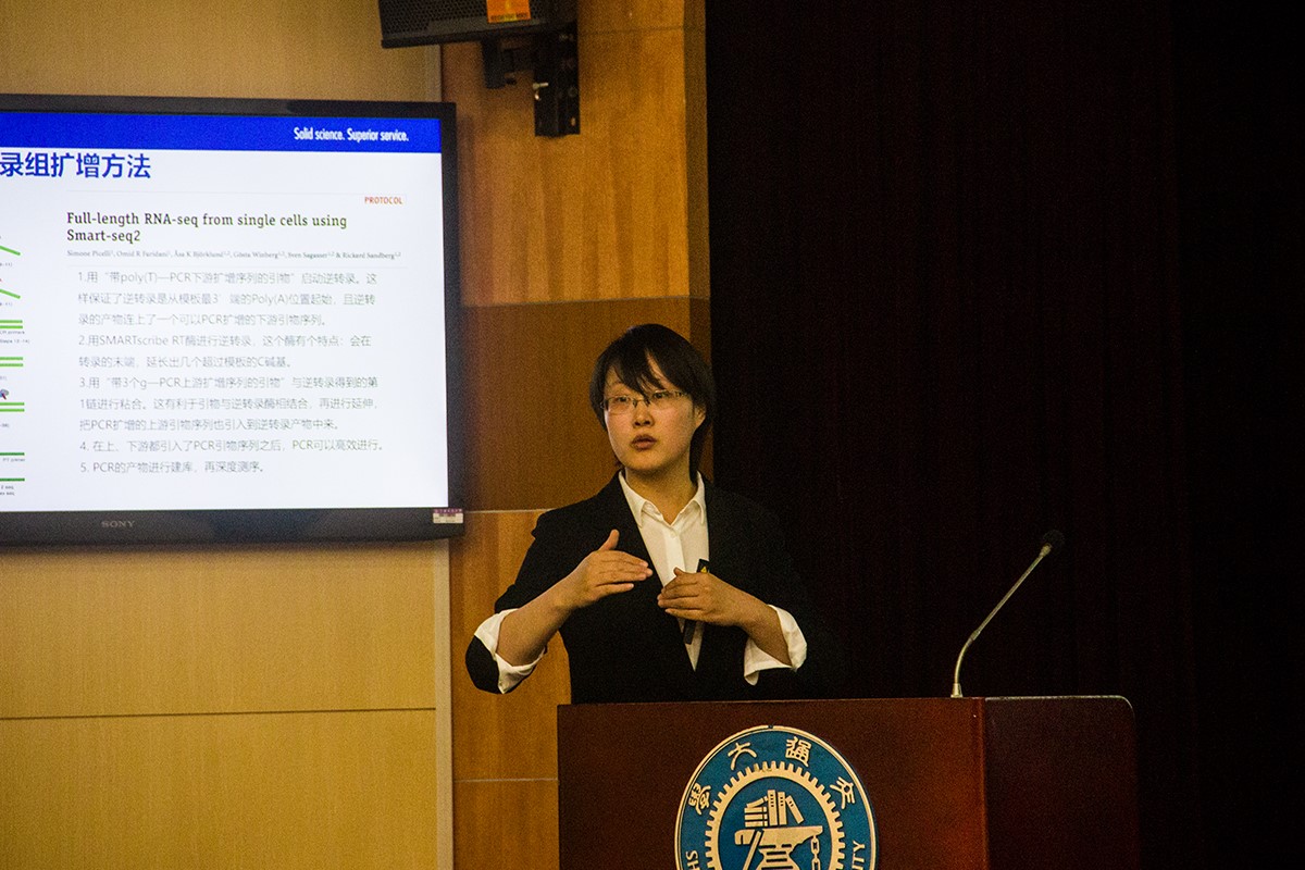 随后,企业 NGS高级产品经理徐琳介绍了单细胞转录组学的研究进展,以及单细胞分析中多种技术在操作中的注意事项,同学们表示受益匪浅。
