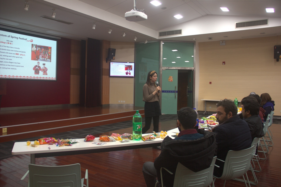 伊朗留学生黎明主持活动。黎明用精彩生动的语言为现场留学生介绍了中国新年的历史、习俗以及传说故事,激发了留学生对中国新年的浓厚兴趣。
