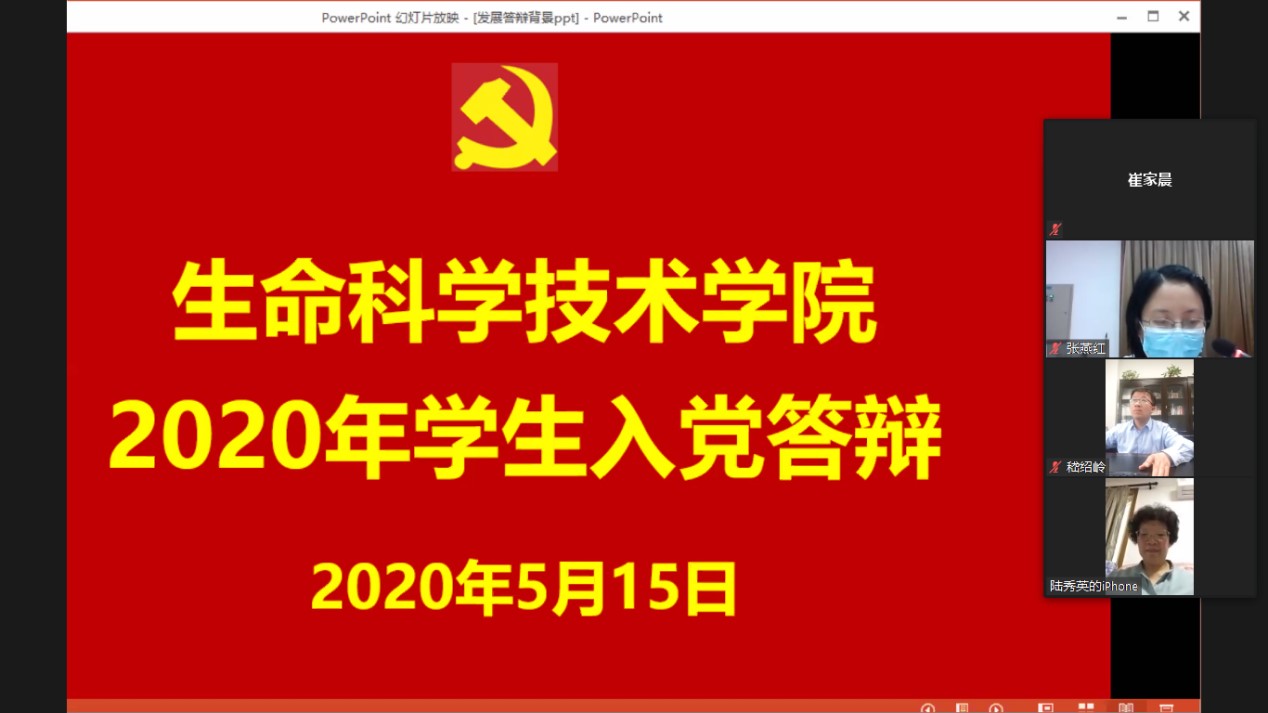 5月15日,36365线路检测登录入口在生命药学楼会议室举行入党积极分子发展入党答辩会,因疫情影响,此次入党答辩采取线上和线下结合的方式进行,共计34名学生入党积极分子参加。学院党委书记嵇绍岭、组织员段慧丹、学院特邀党建组织员陆秀英及学生党支部书记张燕红出席并担任评委,会议由张燕红主持。