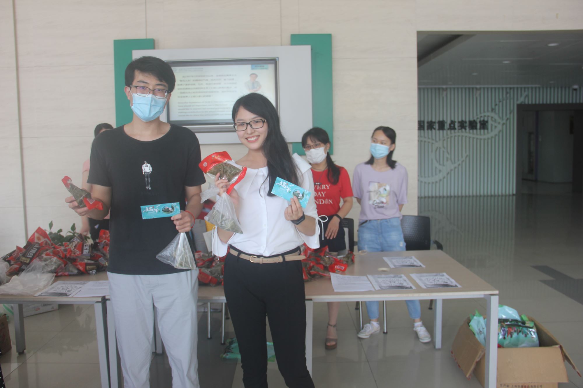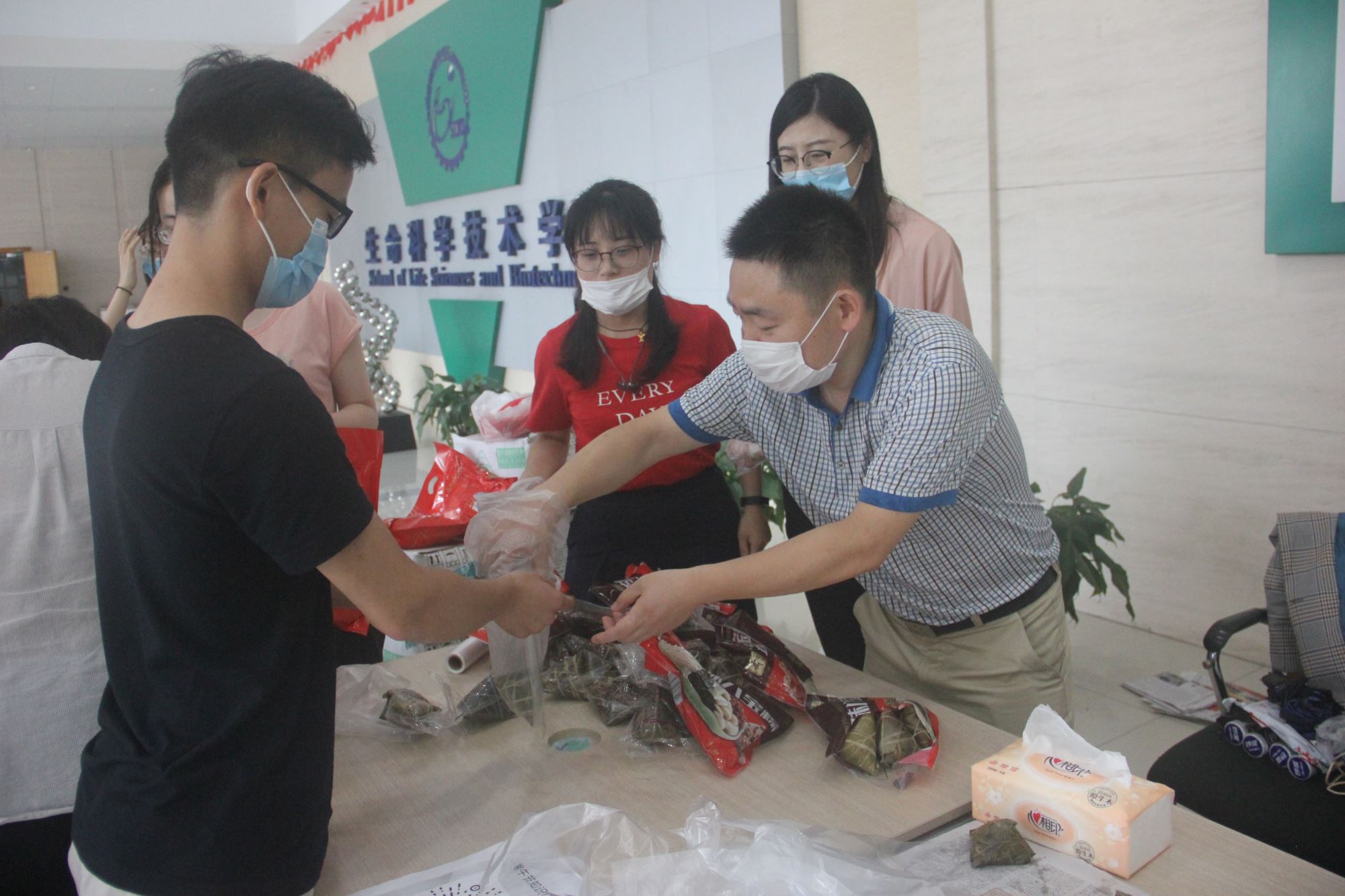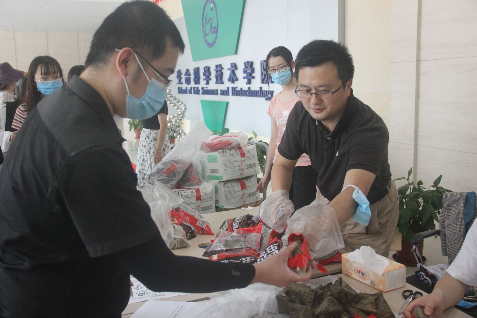 为迎接端午节,助力生科学子科研复工复产,36365线路检测登录入口举办了“端午传情,浓情粽香”活动,于6月24日中午在学院大厅为复工复产的同学们送上端午节礼物,学院党委书记嵇绍岭、党委副书记李文纯、学生办张燕红、李芳、徐菁苒,博士生兼职思政肖华出席了本次活动。活动由学院研究生会组织承办。