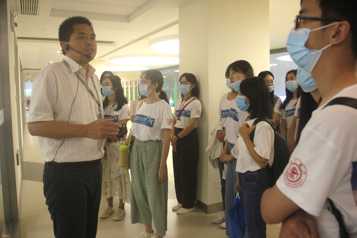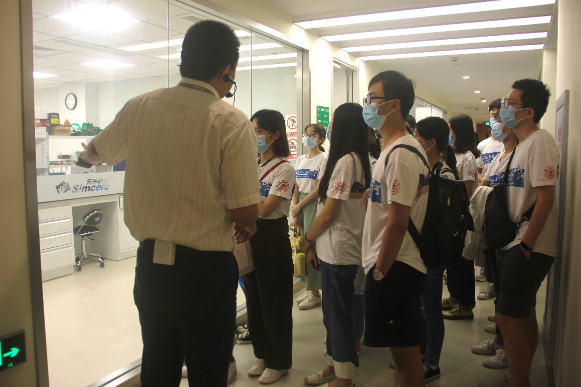 江苏先声药业有限公司人力资源部经理陈怡热情接待了实践团一行。陈怡介绍了公司的发展历史和布局,让实践团成员对先声药业有了初步的认识。紧接着在研究员王帅带领下,实践团一行参观了二楼实验室,同学们认识到作为一个以创新和研发为驱动力的制药公司,其目的是生产出安全有效的药物,这需要大量的实验筛选以及临床验证。先声药业聚焦于“肿瘤”,“中枢神经”和“自身免疫病”三大疾病领域,研究产品包括生物药与化学药。实验室的参观介绍让同学们既能联系到自身专业知识进行深入理解,又能对生物医药领域的工作情况有新的认识。