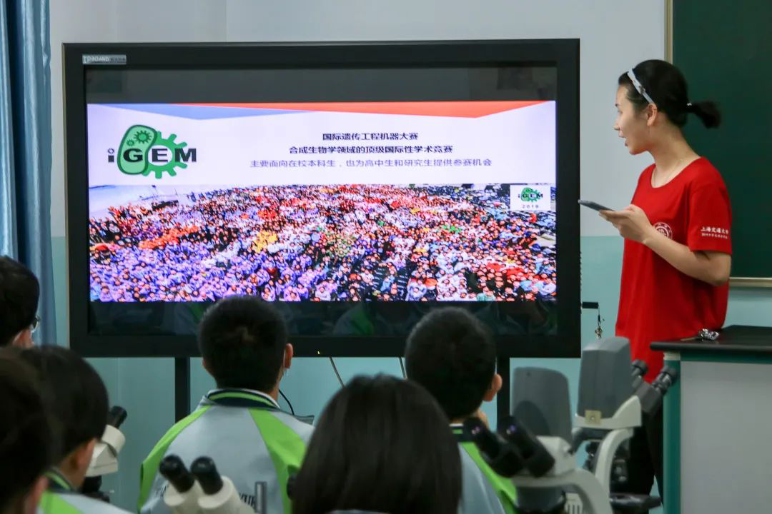 与iGEM软件队——SJTU-software的合作,是今年团队开展实践工作的最大创新点之一。每年,来自世界各国的参赛队伍都会在美国波士顿展开激烈角逐,共同探索合成生物学前沿的奥秘,其中不乏中学生组成的队伍。在国内,中学生普遍受限于课本知识体系,对生命科学的前沿研究与应用等了解极少。实践团希望以此次夏令营为契机,带领同学提前开阔学术视野,培养学术志趣。实践团始终致力于用体验式、实践式的课堂模式,让同学们在繁重的高中学习任务之余能够“开眼看世界”,关注学术前沿,拓宽视野胸襟,转变思维方式,提前在他们心中种下一颗“热爱科学,主动探究,紧跟时代”的种子。