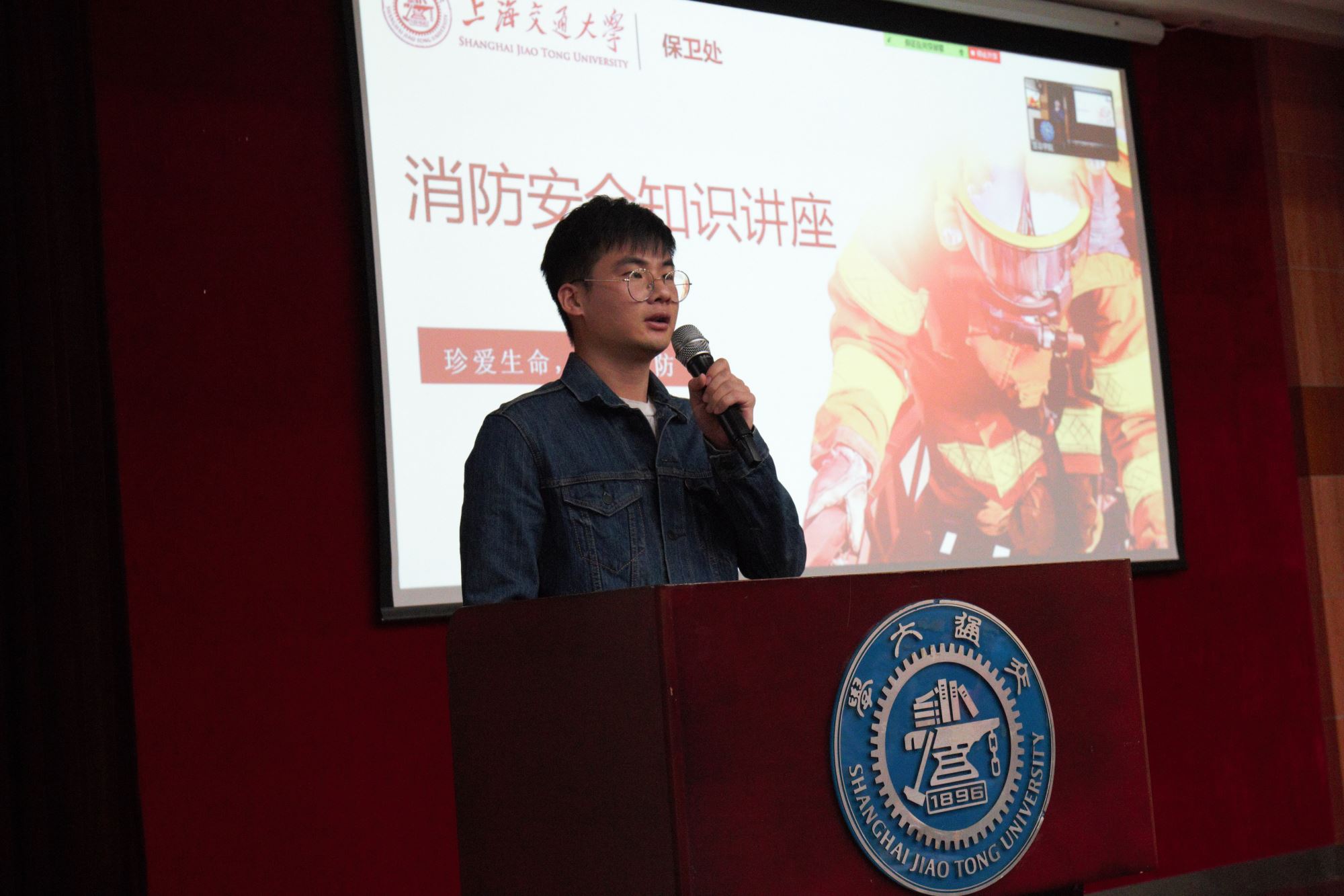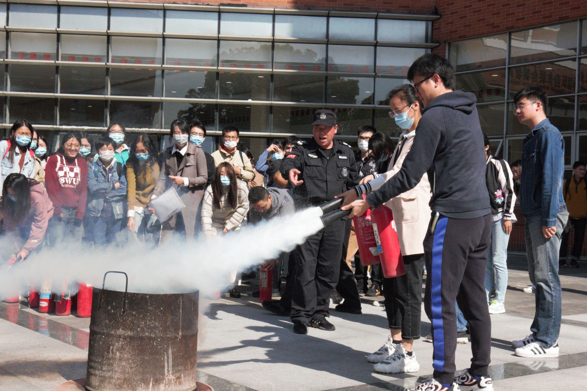 谢鹏辉作消防安全知识讲座,介绍了火灾的基本知识及案例、灭火的基本常识等。随后,2020级新生在生命药学楼学院大厅和广场前进行了应急救援和消防演练。