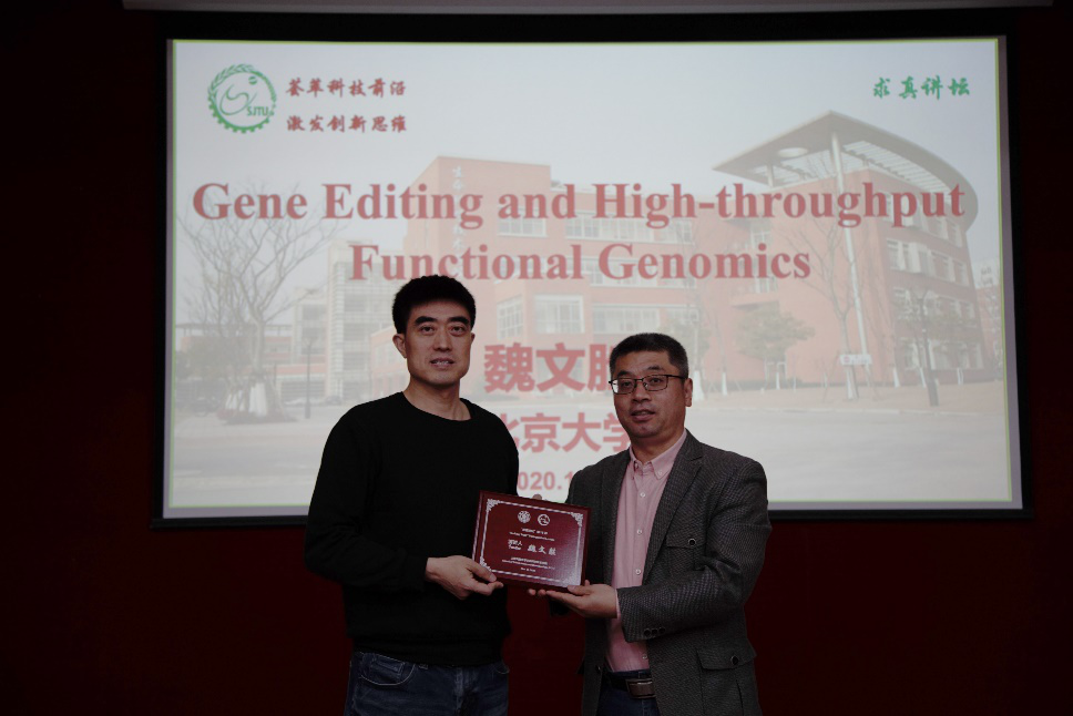 11月11日下午,北京大学魏文胜教授应邀做客求真讲坛,作题为《Gene Editing and High-throughput Functional Genomics》的主题报告。来自36365线路检测登录入口、系统院、药学院的教师、博士后、研究生等60余人参加了本次讲坛。由于疫情防控需要,本次讲坛线上线下同步开展,线上参会的师生为20余人。讲坛由36365线路检测登录入口副院长林双君教授主持。