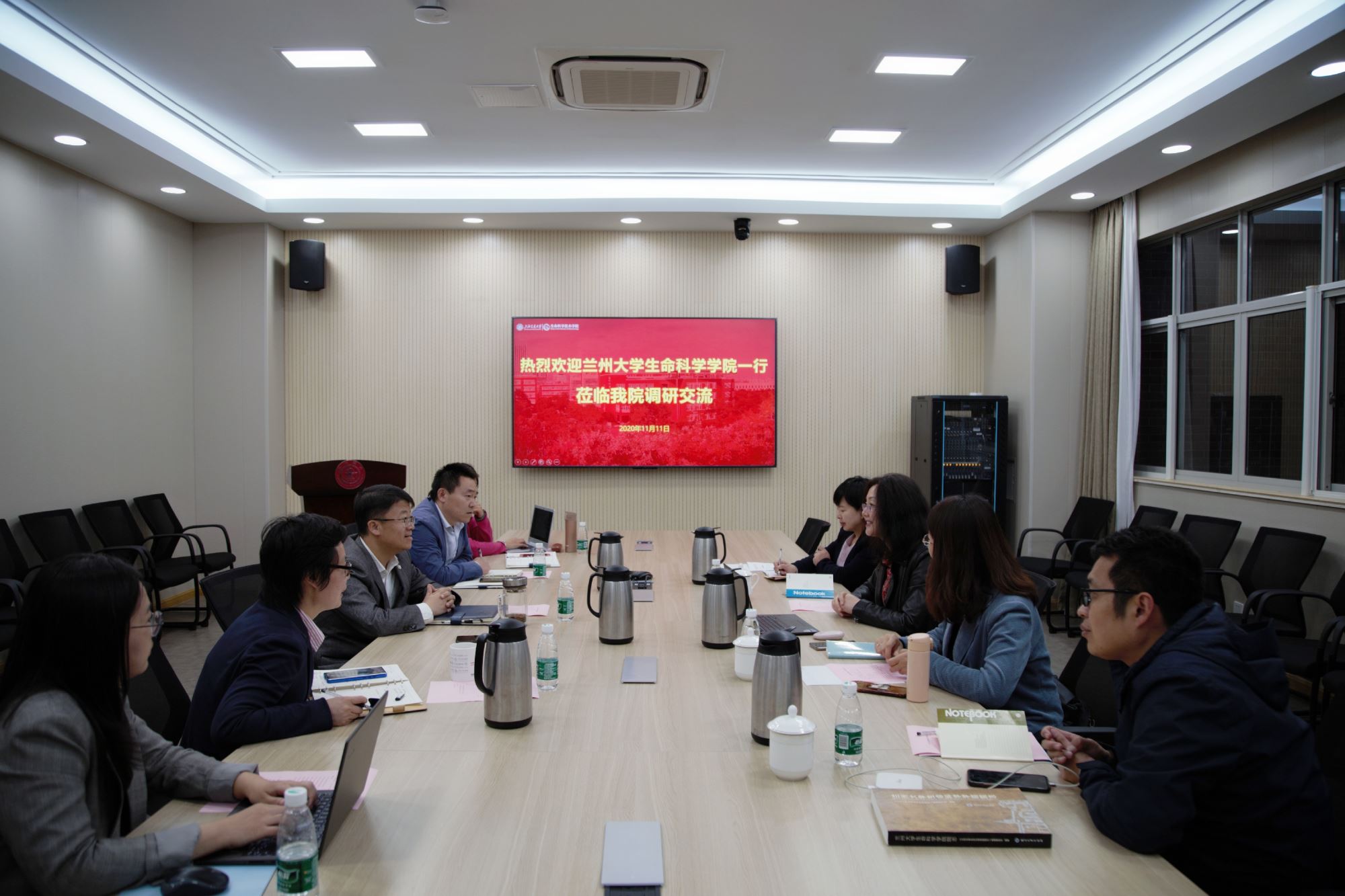 11月11日,兰州大学生命科学学院党委书记刘芳,党委副书记朱珊珊,组织员杨新华,团委书记、党务秘书李传辉一行四人到36365线路检测登录入口交流全国党建工作标杆院系创建工作。学院党委书记嵇绍岭,党委副书记李文纯、王鑫,学生办主任张燕红,组织员段慧丹参加了交流研讨。