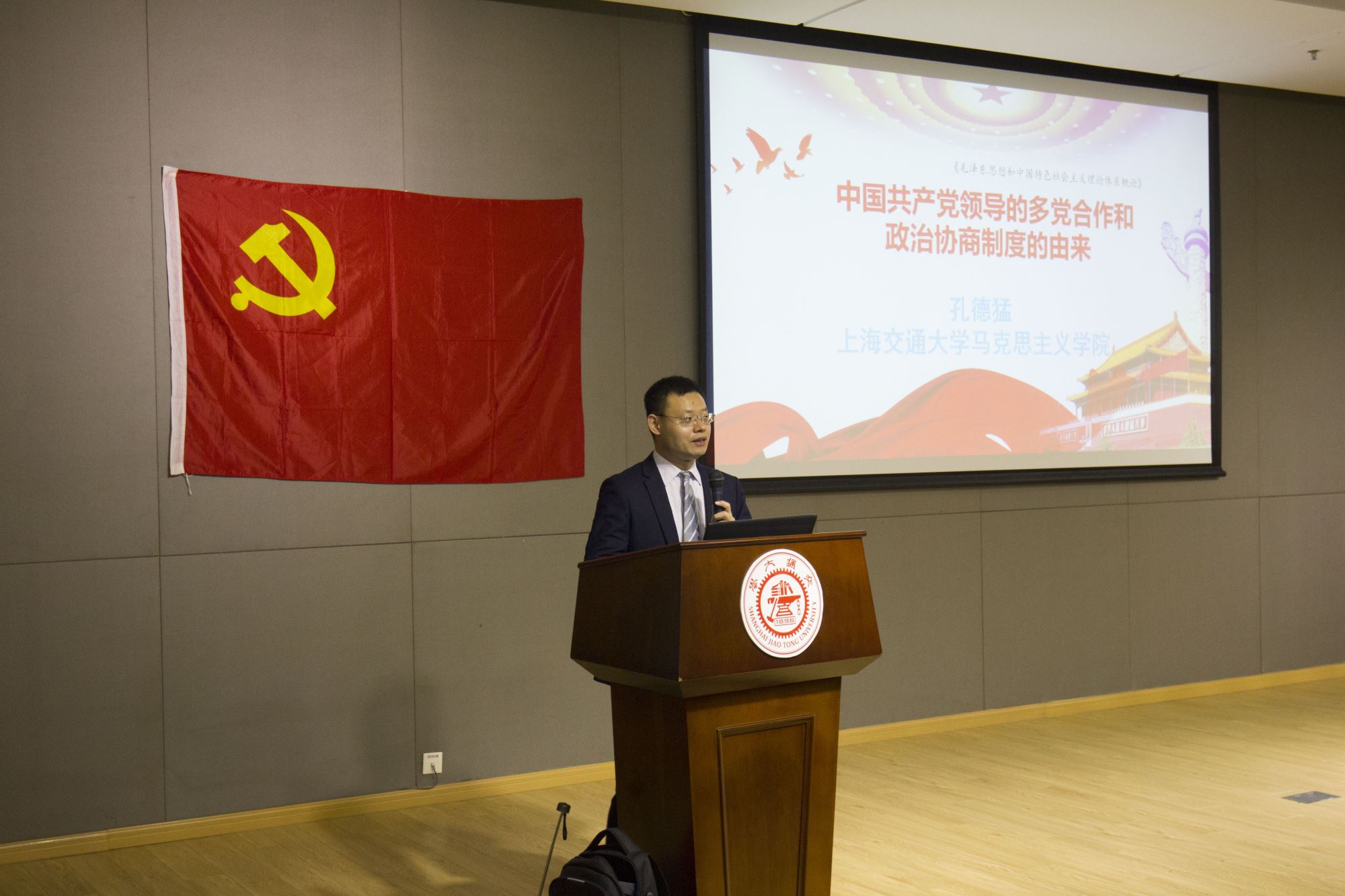 马克思主义学院教师孔德猛为同学们作题为“中国共产党领导的多党合作和政治协商制度的由来”理论学习讲座。讲座深入浅出地介绍了民族资产阶级的起源、新旧政协的召开、中共和民主党派的关系三大学习重点,带领同学们深刻把握中国共产党领导的多党合作和政治协商制度的由来及其重要意义。