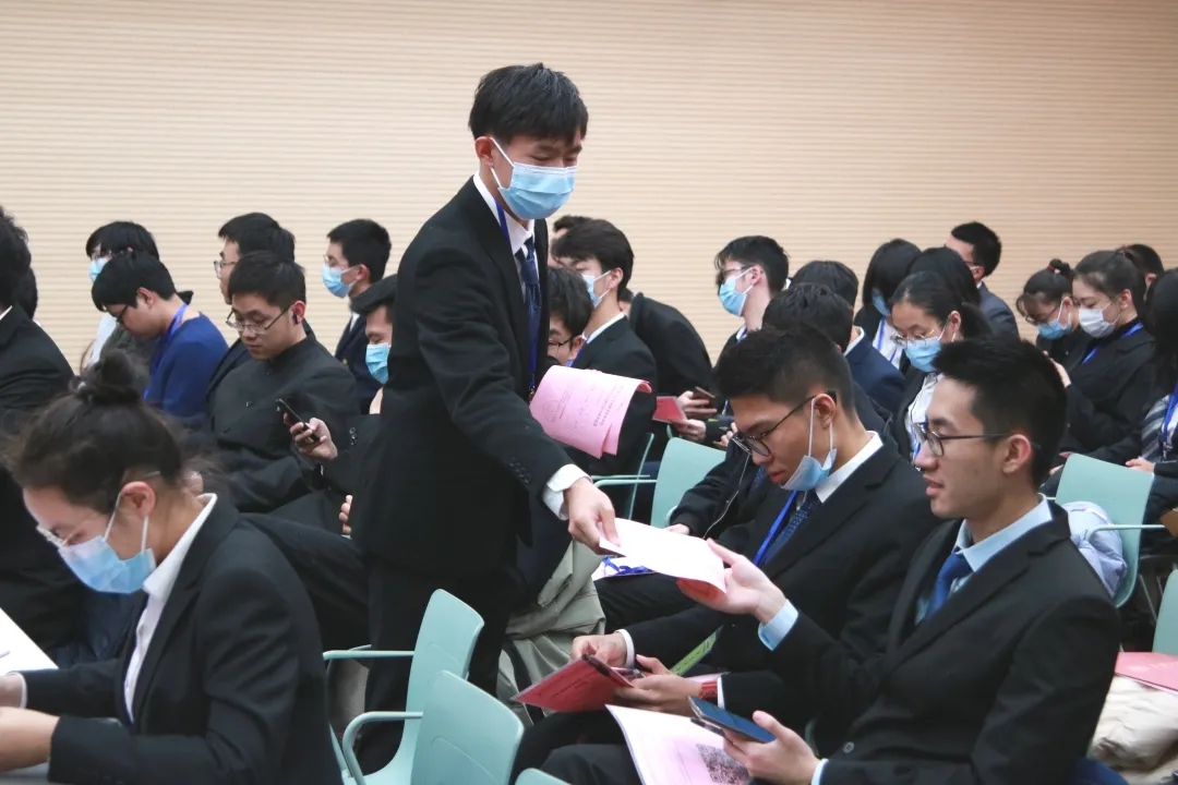 本次主席团竞选正式候选人有张智进、申若曦、包怡然、汤天辰、张宁杰(按抽签顺序排序)。五位候选人依次上台展示自己的风采,提出自己对团学联未来工作的规划和设想,并回答在场学生代表的提问。全体学生代表依次投票,总监票人、监票人全程监督投票过程,并现场唱票、计票。总监票人宣布张宁杰、汤天辰、申若曦当选第十届团学联主席团成员,全体代表鼓掌通过。第九届主席团将院旗传递到新一届主席团成员手中,象征着光荣和责任的薪火相传。