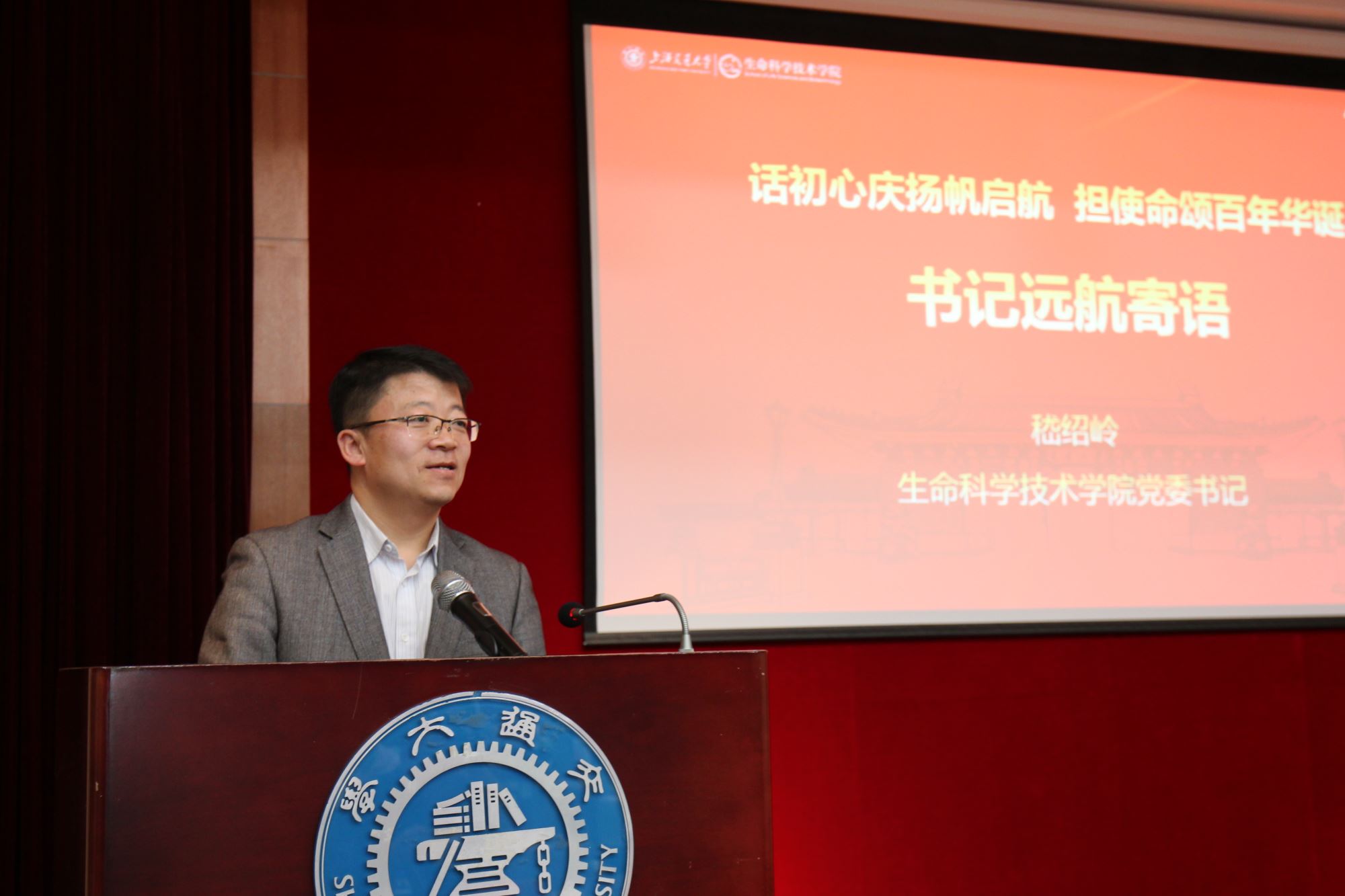 接下来,嵇绍岭以“话初心庆扬帆起航,担使命颂百年华诞”为题,为2021届研究生上最后一堂课。他首先带领大家回顾了学院快速发展的历程及今日生科取得的可喜成绩。嵇绍岭指出,历代生科人不懈奋斗,助力学院走出了一条具有交大特色的生命学科“跨越式”发展之路。昨日生科,成绩斐然,明日生科,仍需同学们共同努力,嵇书记对即将毕业启航的生科学子提出三点希望,一是“坚定理想信念,践行初心使命”,希望党员同学和入党积极分子牢记“为中国人民谋幸福,为中华民族谋复兴”的初心使命,把初心和使命变成锐意进取、开拓创新的精气神和埋头苦干、真抓实干的原动力,为党、为祖国、为人民多作贡献,追求和成就有意义、有价值、有创造的未来。二是“牢记志存高远,勇担时代重任”,希望同学们树立与时代主题同心同向的远大理想,励志勤学、刻苦磨炼,在激情奋斗中绽放青春光芒志存高远、脚踏实地,勇担时代使命。三是“厚植家国情怀,彰显生科担当”,希望同学们树立家国情怀,为健康中国贡献力量,秉承生科人的科学严谨、脚踏实地的科研精神,将自己的人生奋斗目标融于实现中华民族伟大复兴的中国梦之中。嵇绍岭勉励同学们秉承交大人“敢为人先”的气魄,牢记 “修德厚爱,健己惠人,强队谐群,凝特聚优”的生科精神,不忘初心、砥砺前行。
