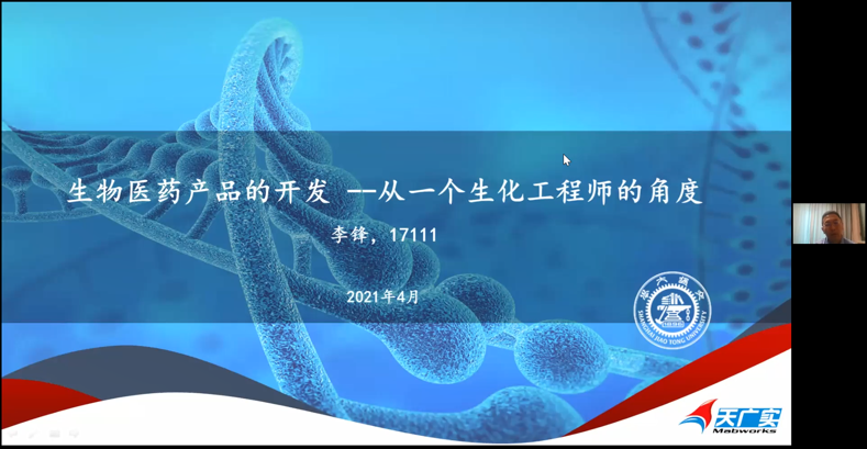 校友李锋现任北京天广实生物技术股份有限公司董事长兼总经理,他从学习工作经历、回国创业经历、生物医药产业发展、面临的挑战和机会这四个方面为校友和在校生介绍了生物医药产品的开发。他希望同学们保持对新技术的热情,敢于提出新的想法,使中国本土的药物研发产业得到可持续性的发展。