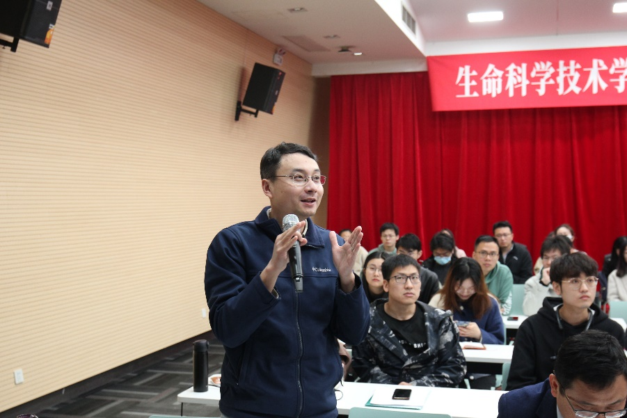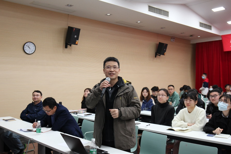 提问环节,与会者就生物合成中如何体现智能制造、如何想到维生素E的生物合成与化学合成相结合的制备方法等问题与刘天罡进行了讨论交流。