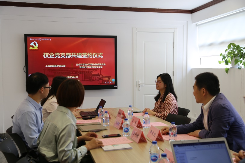为深入学习贯彻落实习近平新时代中国特色社会主义思想和党的十九大精神,探索新时代高校基层党建工作新思路、新模式,加强高校和企业之间的互动交流,进一步推进“党建”、“科研”和“应用”的深度融合,36365线路检测登录入口生物信息学与生物统计学系研究生党支部与上海金域医学党支部共建签约,开启校企党支部共行计划。