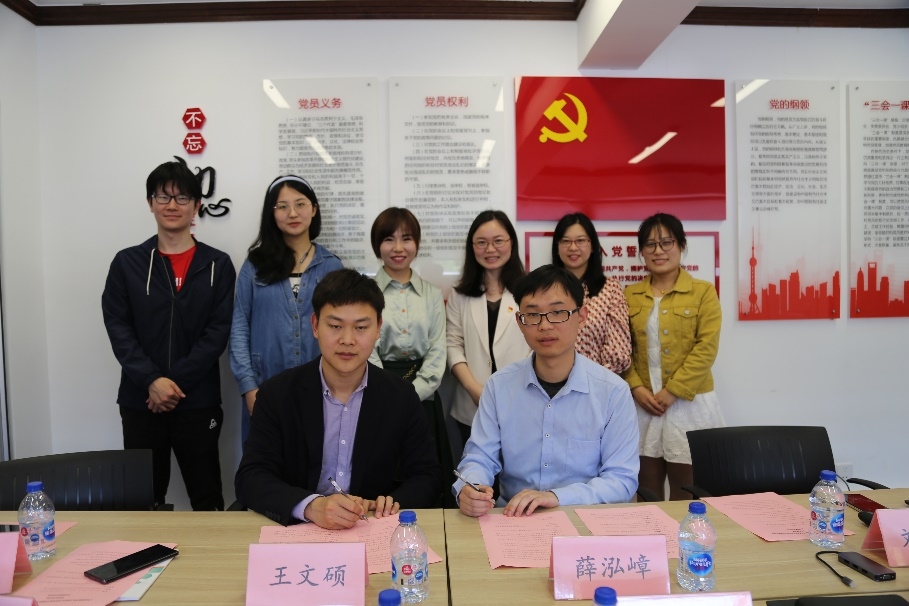 随后,王文硕和薛泓嶂作为双方代表签署了党支部结对共建协议。双方表示希望能够通过党支部共建共行,促进人才交流,实现优势互补,实现校企人才培养的深度融合。