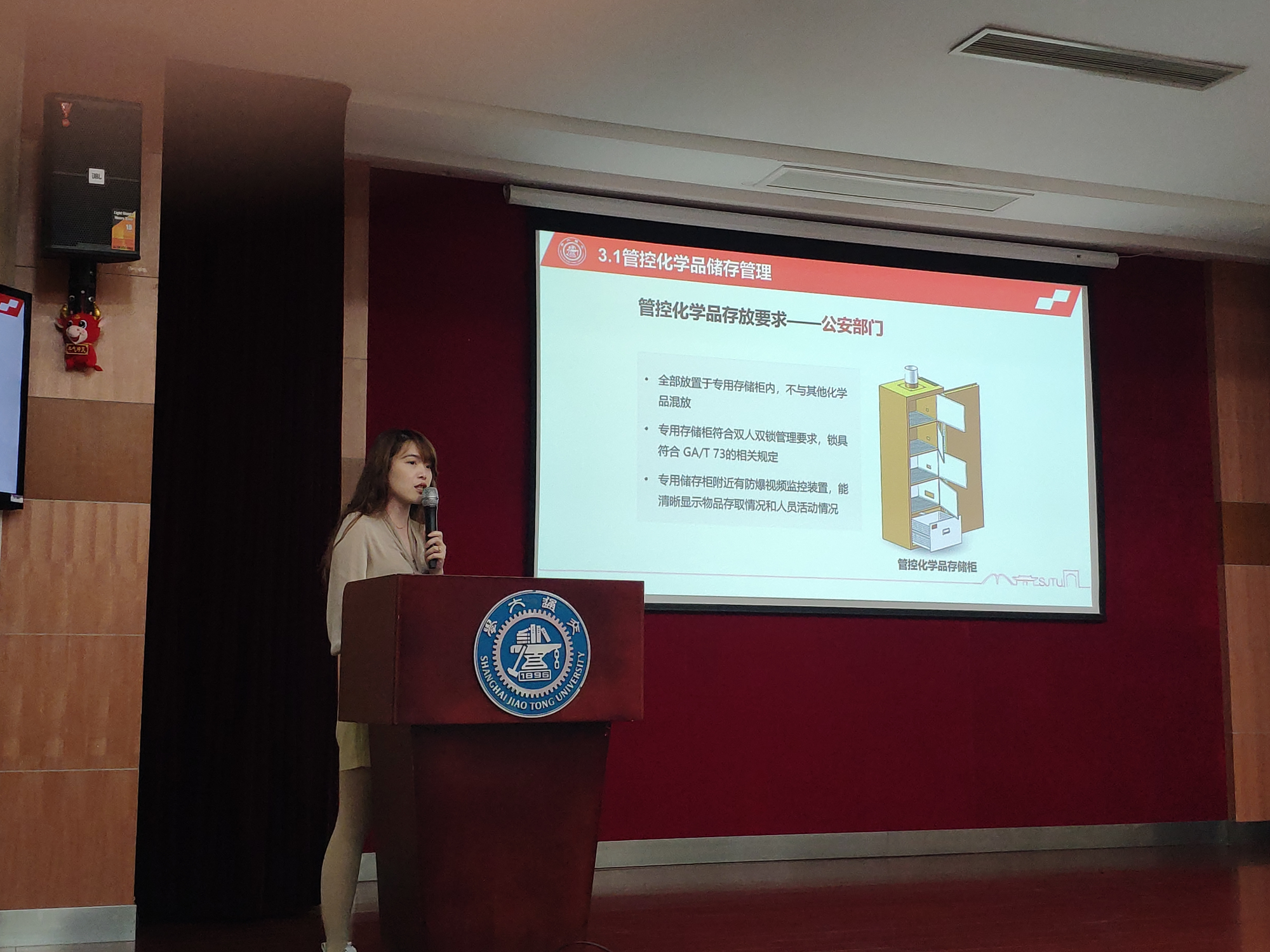 刘璐做学院管控化学品规范化管理报告,详细介绍了管控化学品的分类、学院管控化学品管理的基本情况与现存问题,并向大家介绍了学院管控化学品规范化管理方案,同时对师生存在的疑问进行一一解答,现场讨论气氛热烈。