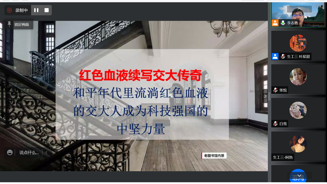 党支部书记、副系主任徐俊教授带领教师党员与强基班同学共同缅怀了五四运动中先进青年知识分子和广大人民群众展现的崇高爱国情怀和革命精神,介绍了五四运动以爱国、进步、民主、科学为主要内容的精神内核,师生集体观看了2019年习近平总书记在纪念五四运动100周年大会发表的重要讲话。