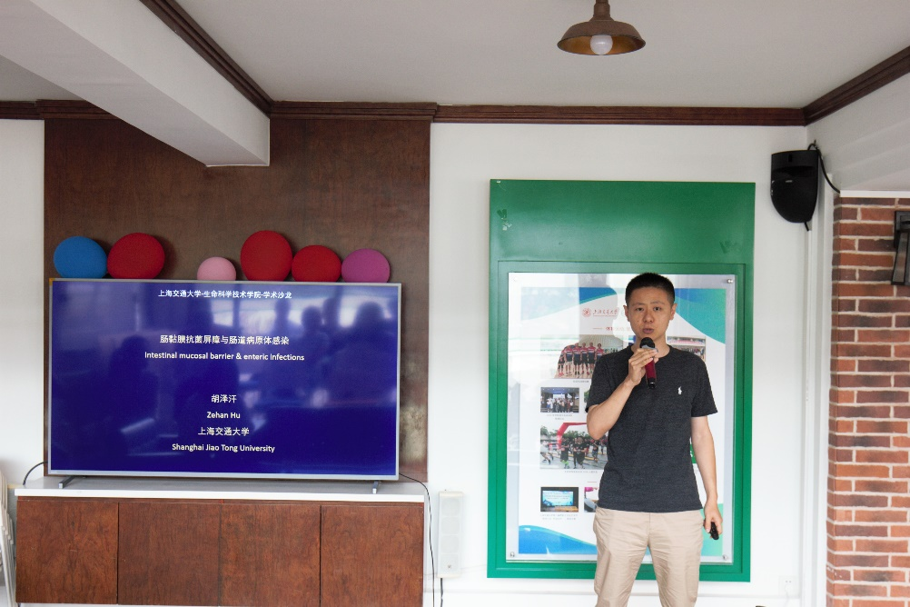 胡泽汗作题为《肠黏膜抗菌屏障与肠道病原体感染》的专题报告,他围绕肠上皮细胞是如何响应肠道微生物定植以及肠黏膜屏障如何抵御微生物感染的分子机制展开,介绍了课题组此项工作的最新研究进展:鉴定了一类新的肠道抗菌蛋白,并揭示其在稳态、病原菌感染和肠道寄生虫感染等多种条件下对小鼠肠黏膜抗菌屏障维持的重要作用。