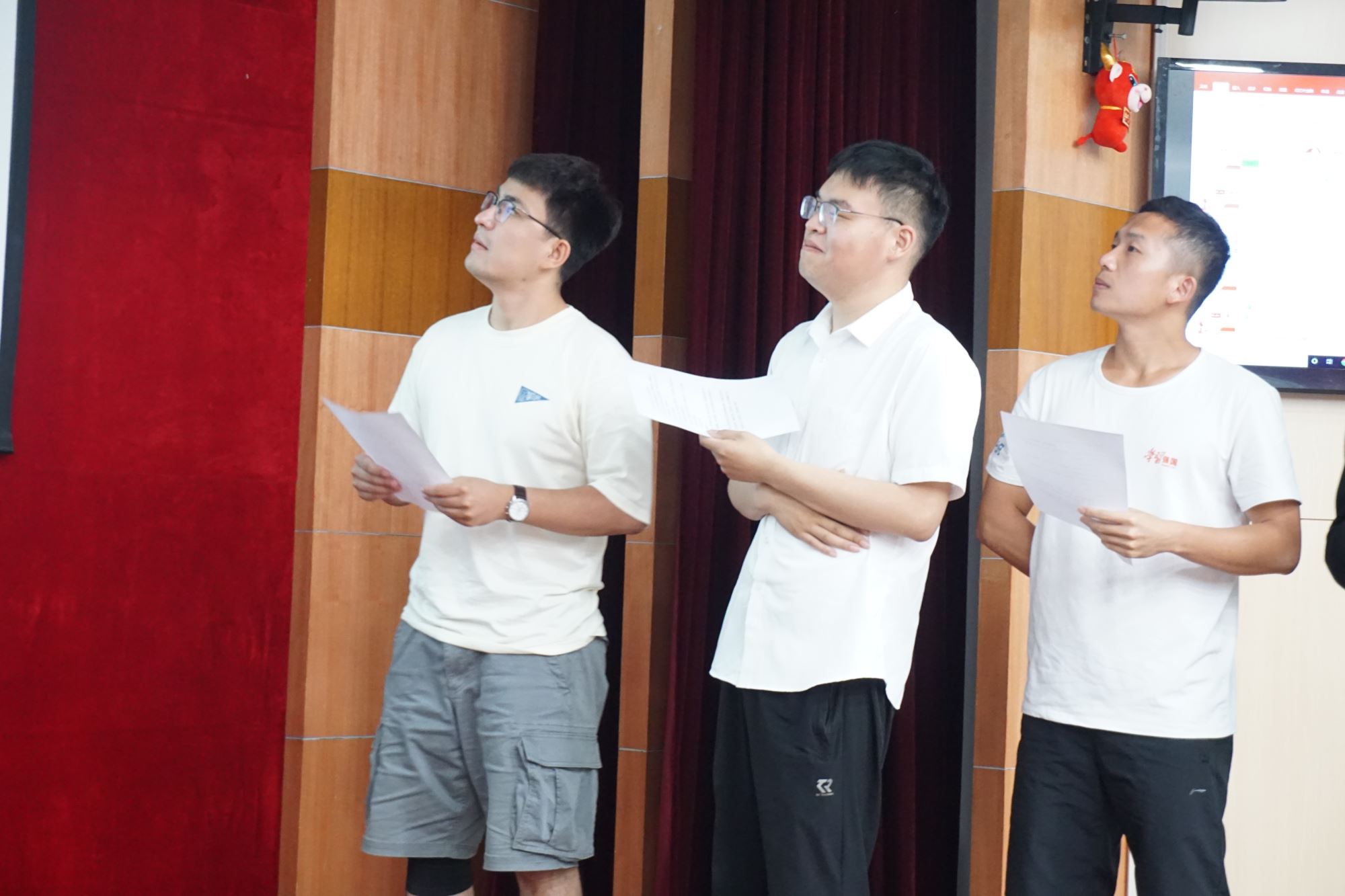 一阵响亮而悠长的笛声将活动拉开帷幕,“唱支山歌给党听”,一句嘹亮的歌声在学院大厅响起,饱含深情,气势磅礴。四位同学在活泼轻快的伴奏中歌唱《骄傲的少年》,显示出了青年人的朝气蓬勃。诗歌朗诵环节,六位同学富有感情地朗诵了《青春中国》,抑扬顿挫,扣人心弦。庄严的宣誓环节,预备党员面对党旗,一字一句宣誓,表达了对党的绝对忠诚和无限热爱。通过此次快闪活动,同学们把热情和赞歌献给伟大的党,以实际行动向党的生日献礼。