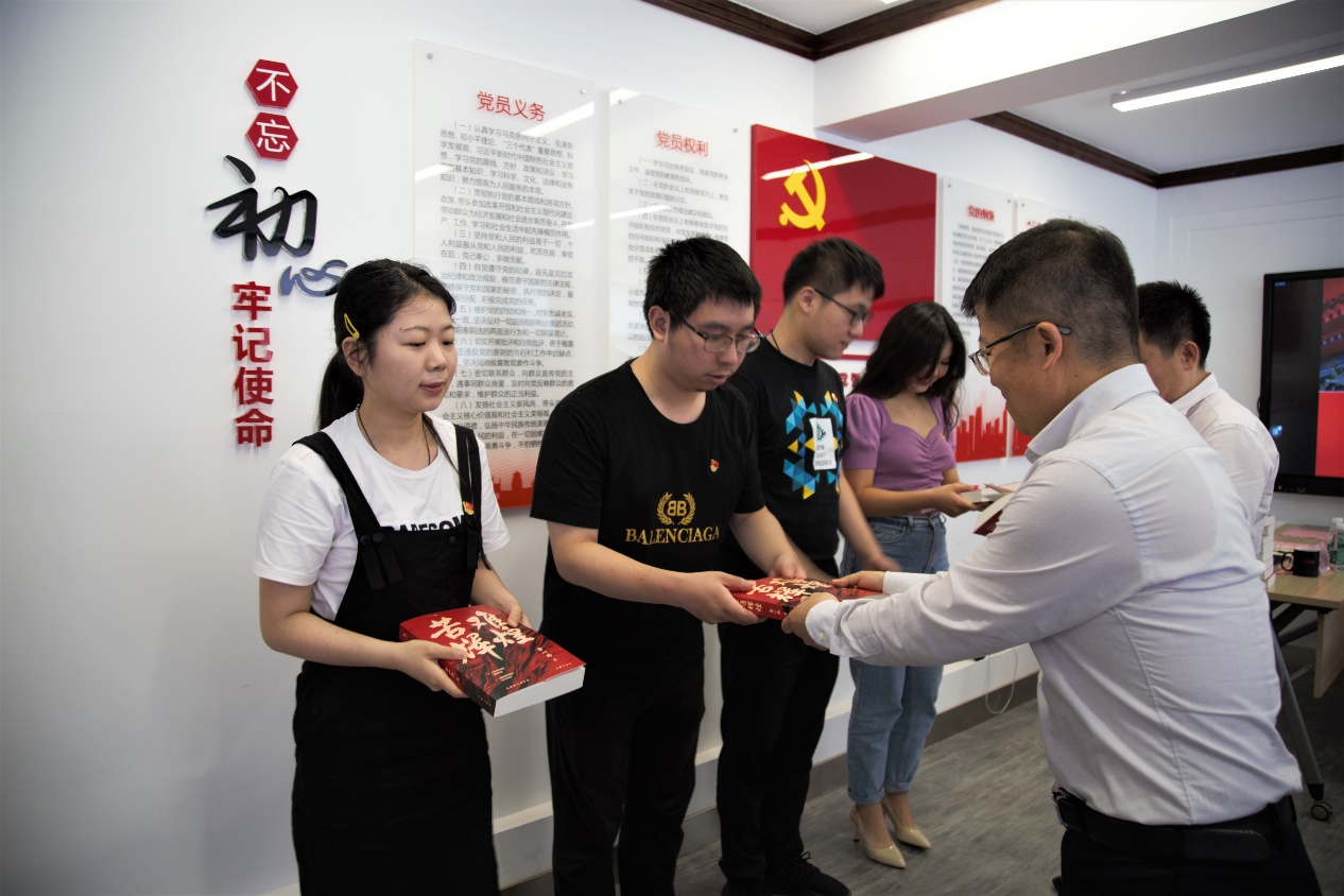 党课之后进行赠书环节,学院特别为每一位毕业本科生党员准备了书籍《苦难辉煌》,在书的扉页由嵇绍岭书记题写“学党史,守初心,勇担时代使命”的寄语,勉励毕业本科生党员铭记历史、不忘初心,以祖国强盛为己任,勇担使命。