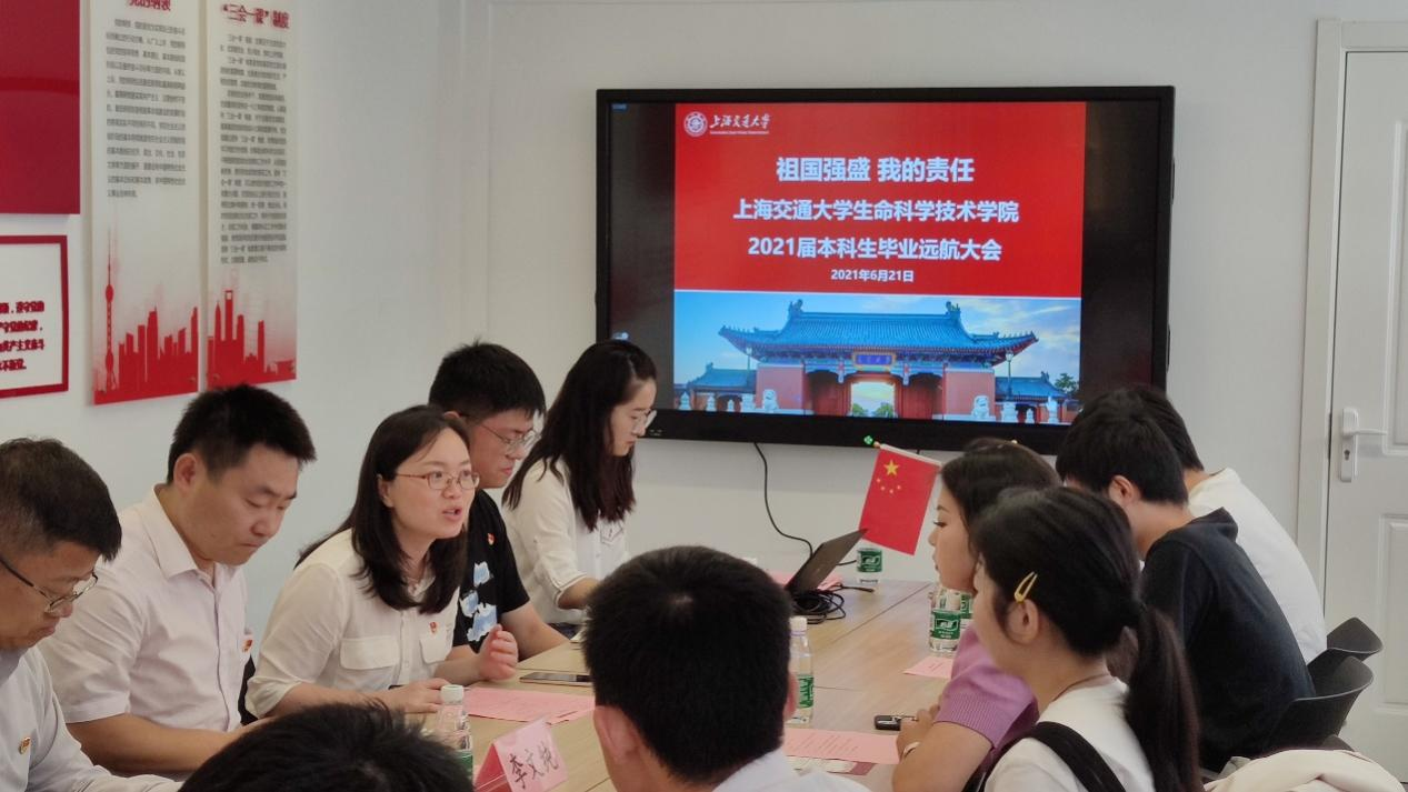 嵇绍岭书记带领同学们共同回顾中国共产党建立和发展的重要实践历史,并指出,今年是建党100周年,以史鉴今,从历史中汲取精神力量,牢记中国共产党人为中国人民谋幸福,为中华民族谋复兴的初心使命。随后,通过《榜样5》和校友钱学森的入党故事,嵇书记阐述了交大人、生科人的使命和担当,并对毕业生党员和积极分子提出三点希望:结合学习党史、新中国史、改革开放史、社会主义发展史,在学思践悟中坚定理想信念,在奋发有为中践行初心使命;牢记志存高远,勇担时代重任,树立与这个时代主题同心同向的远大理想,勇于担当这个时代赋予的历史重任,无论身处于社会的什么角色,都要励志勤学、刻苦磨炼,在激情奋斗中绽放青春光芒;厚植家国情怀,彰显生科担当,要秉承生科人的科学严谨、脚踏实地的科研精神,有决心、有耐心、有信心,将自己的人生奋斗目标融于实现中华民族伟大复兴的中国梦之中。