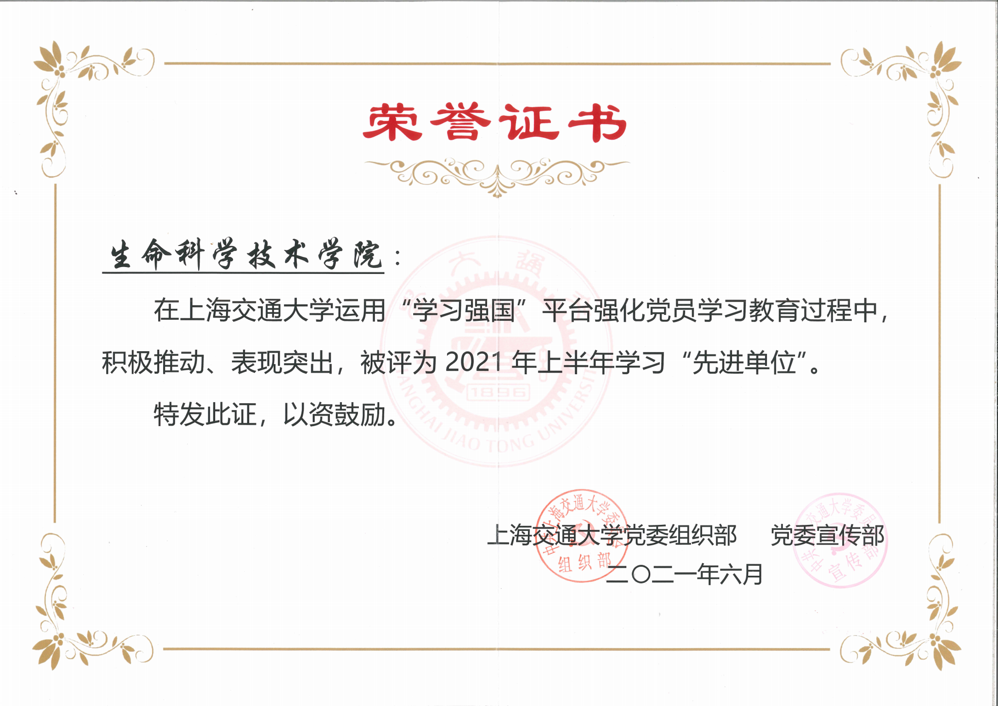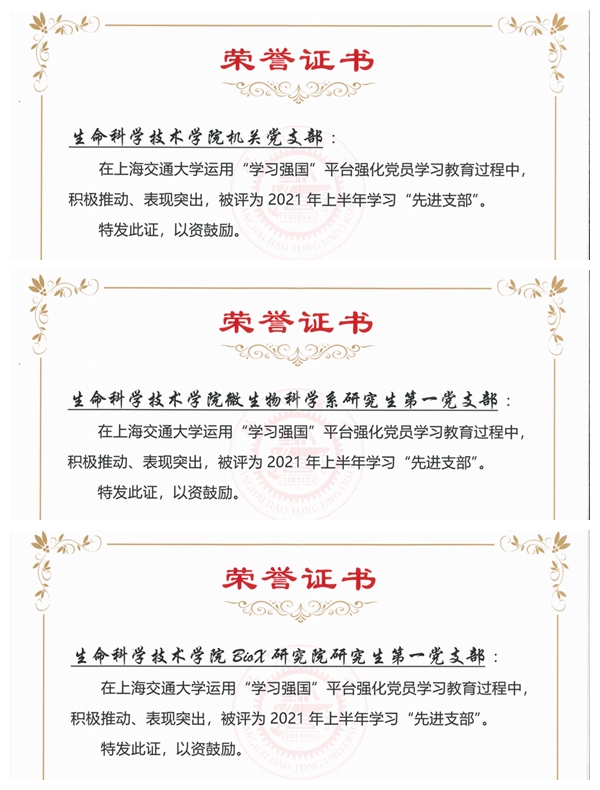 在36365线路检测登录入口2021年上半年“学习强国”学习先进单位、先进支部、先进个人评选中,36365线路检测登录入口获评2021年上半年学习“先进单位”,机关党支部、Bio-X研究院研究生第一党支部、微生物科学系研究生第一党支部获评2021年上半年学习“先进支部”,蒋海霞、毛雪莹等5名党员同志获评2021年上半年“学习达人”荣誉称号。