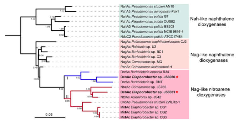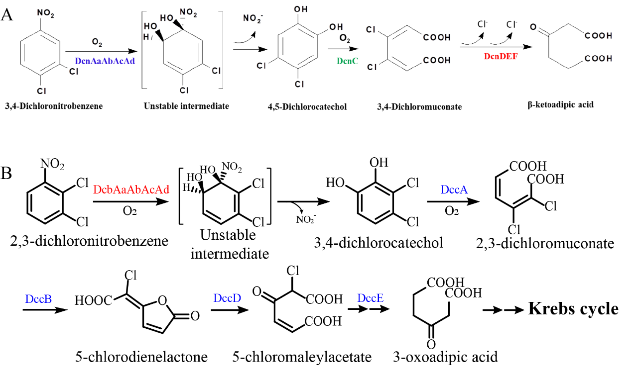 近日,36365线路检测登录入口、微生物代谢国家重点实验室周宁一教授团队解析了两种二氯代硝基苯的代谢机理及其进化渊源。相关成果“A Nag-like dioxygenase initiates 3,4-dichloronitrobenzene degradation via 4,5-dichlorocatechol in Diaphorobacter sp. strain JS3050” 发表于《Environmental Microbiology》,博士后高义舟为第一作者,周宁一教授和美国西佛罗里达大学的Jim C. Spain教授为通讯作者。另一成果“A recently assembled degradation pathway for 2,3-dichloronitrobenzene in Diaphorobacter sp. strain JS3051”发表于《mBio》,博士后李涛为第一作者,周宁一教授为通讯作者。